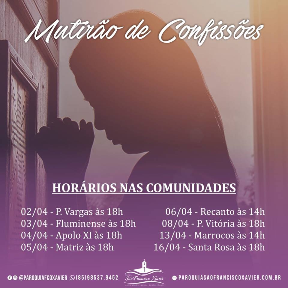 A Paróquia São Francisco Xavier, no bairro Conjunto Esperança está realizando desde dia 02 e prossegue até 16 de abril, Confissões nas Comunidades.