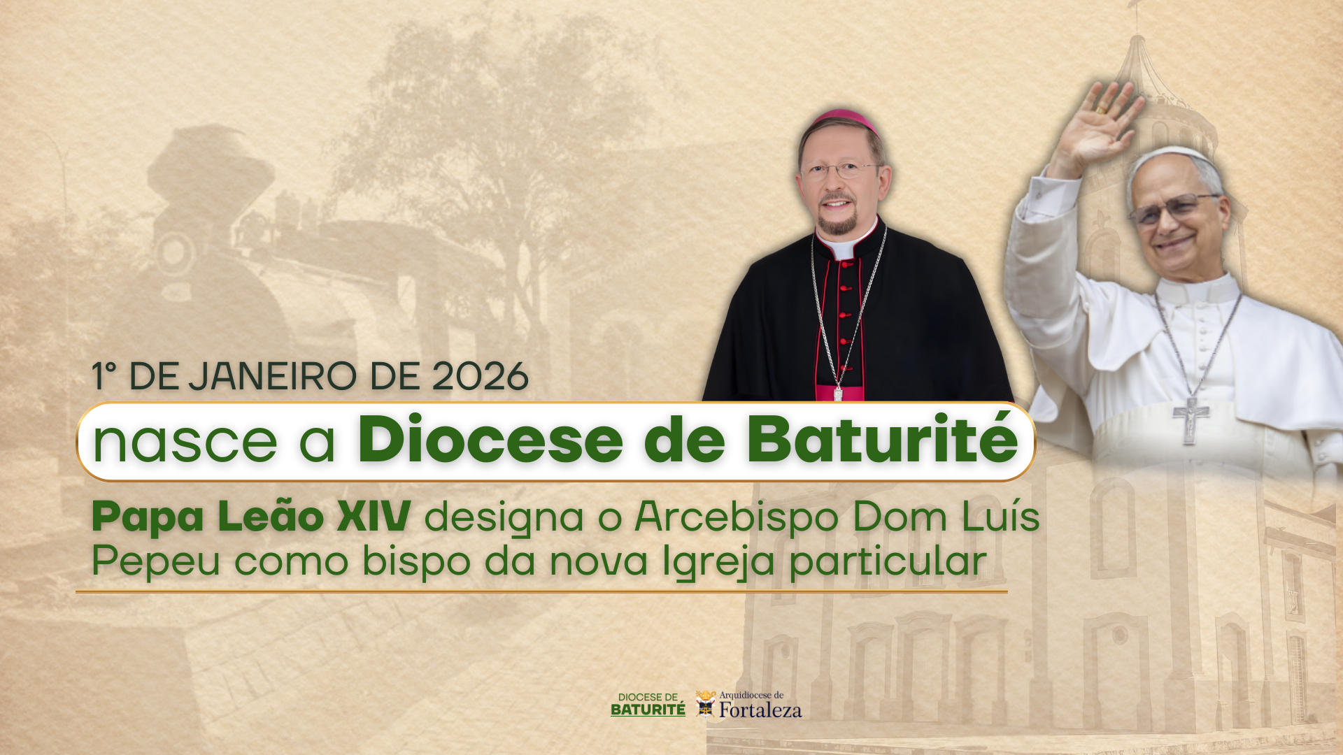 A Igreja Católica no Ceará vive, em 1º de janeiro de 2026, um dos momentos mais significativos de sua história recente. Nesta data, a Santa Sé anuncia oficialmente a criação da Diocese de Baturité, a primeira nova diocese erigida no Estado desde 1971, quando foram criadas as dioceses de Itapipoca, Quixadá e Tianguá. O anúncio, feito pelo Papa Leão XIV, marca uma nova etapa na organização pastoral da Igreja cearense e expressa o cuidado da Igreja com a proximidade, a escuta e o acompanhamento do povo de Deus.