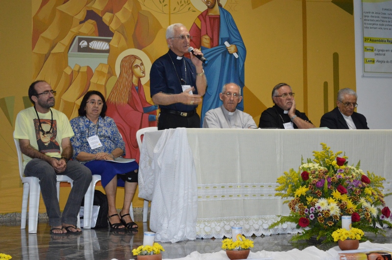 “Já que somos um sinal de Igreja viva, vibrante e missionária daremos continuidade aos nossos trabalhos, avançando na misericórdia. Em comunhão com a Igreja do Brasil, nosso regional traz como objetivo geral desta assembleia evangelizar a partir de Jesus Cristo, na força do Espírito Santo, como uma igreja discípula e missionária, profética e misericordiosa, alimentada pela palavra e eucaristia, à luz da evangélica opção preferencial pelos pobres, para que todos tenham vida”, afirmou Dom Cavuto.