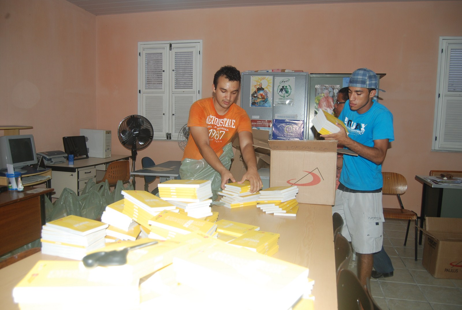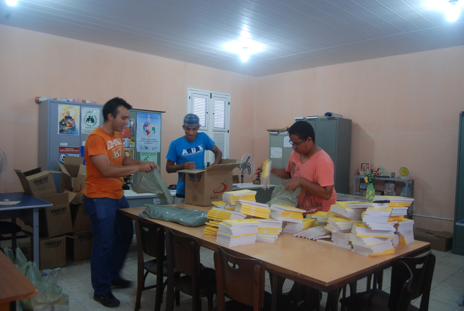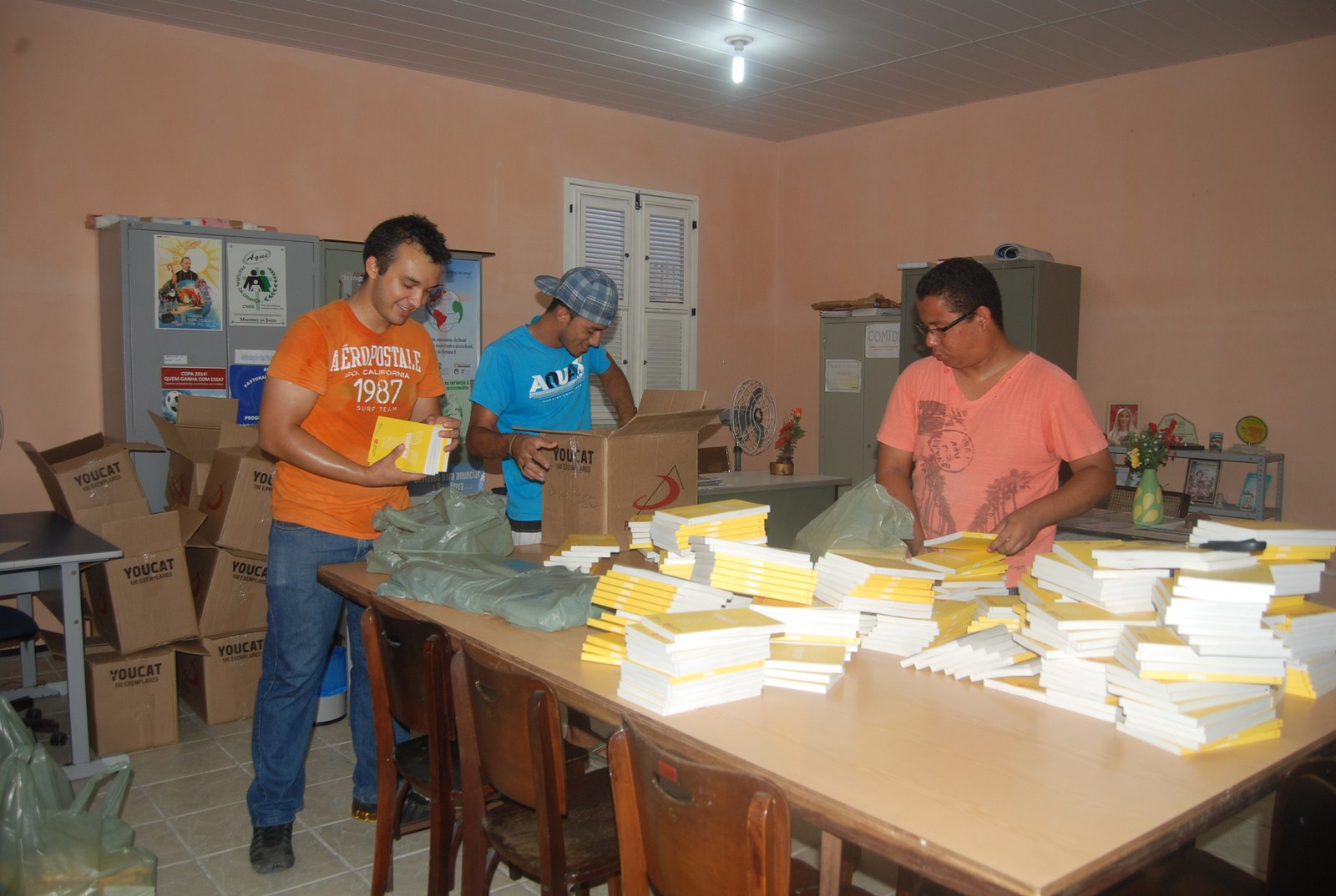 O Setor Juventude da Arquidiocese de Fortaleza esteve no Centro de Pastoral Mãe da Igreja para poder dividir os YOUCAT. Serão 27 para cada paróquia ou área pastoral e devem ser adquirido em cada Secretaria de Região Episcopal.