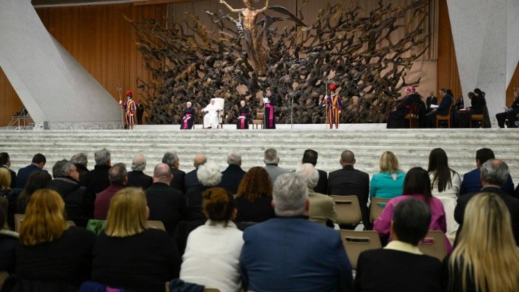 O Papa Francisco, que ainda se recupera de uma infeção pulmonar, ao saudar os fiéis, afirmou: “ainda não estou bem com esta gripe e a voz não está boa”, e passou a palavra a monsenhor Filippo Ciampanelli, colaborador da Secretaria de Estado, que leu o discurso preparado para o ciclo de catequeses sobre a Paixão pela evangelização: o zelo apostólico do crente.