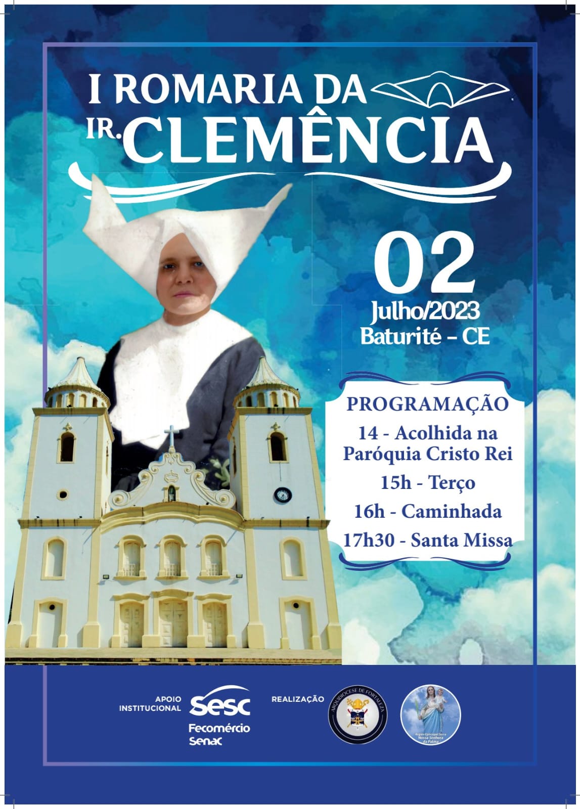 No próximo dia 02 de julho acontecerá, em Baturité, a primeira Romaria da Irmã Clemência. A iniciativa é da Associação dos Devotos da Irmã Clemencia e da Região Episcopal Serra, por ocasião dos 57 anos do falecimento desta Serva de Deus em processo de canonização.
