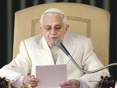 Como o apóstolo Paulo no texto bíblico que ouvimos, também eu sinto no meu coração o dever de agradecer sobretudo a Deus, que guia e faz crescer a Igreja, que semeia a sua Palavra e assim alimenta a fé no seu Povo. Neste momento a minha alma se expande para abraçar toda a Igreja espalhada no mundo; e dou graças a Deus pelas “notícias” que nestes anos do ministério petrino pude receber sobre a fé no Senhor Jesus Cristo, e da caridade que circula realmente no Corpo da Igreja e o faz viver no amor, e da esperança que nos abre e nos orienta para a vida em plenitude, rumo à pátria do Céu.
