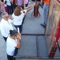 A Cruz e o Ícone entraram na Igreja de Nossa Senhora dos Prazeres ovacionada por uma multidão completamente entusiasmada com o momento único e os levaram até o altar. Nossa equipe fez o registro fotográfico e acompanhou tudo de dentro da torre que é abrigo do relógio que completa seu centenário em 2012. Ao som de “Nova Geração”, lenços brancos, folhetos e chapéus eram acenados com emoção na cidade que esteve em vigília no dia anterior preparando-se para o momento.