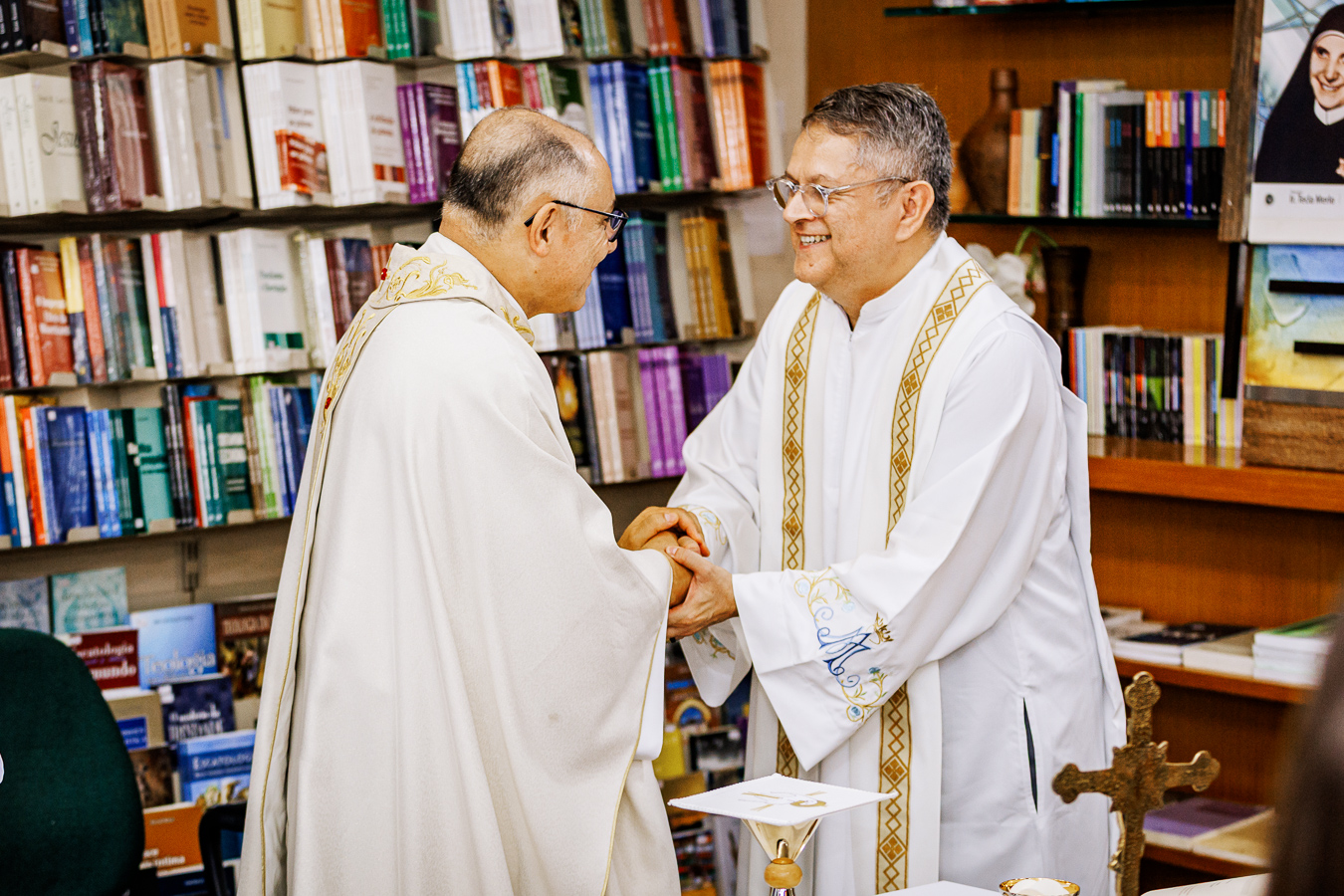 A celebração também foi marcada por recordações e testemunhos de quem faz parte dessa história. Para o colaborador da livraria, Thiago Nascimento, o jubileu representa mais do que uma data comemorativa: é a memória viva de uma missão construída com dedicação e fé.