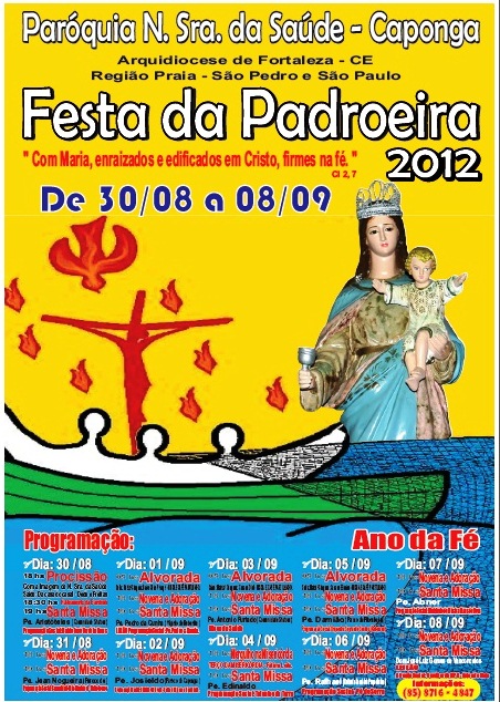 O tema dos festejos é “ Com Maria, enraizados e edificados em Cristo, firmes na Fé” e terá inicio hoje, 30 de agosto, terminado no dia 8 de setembro.