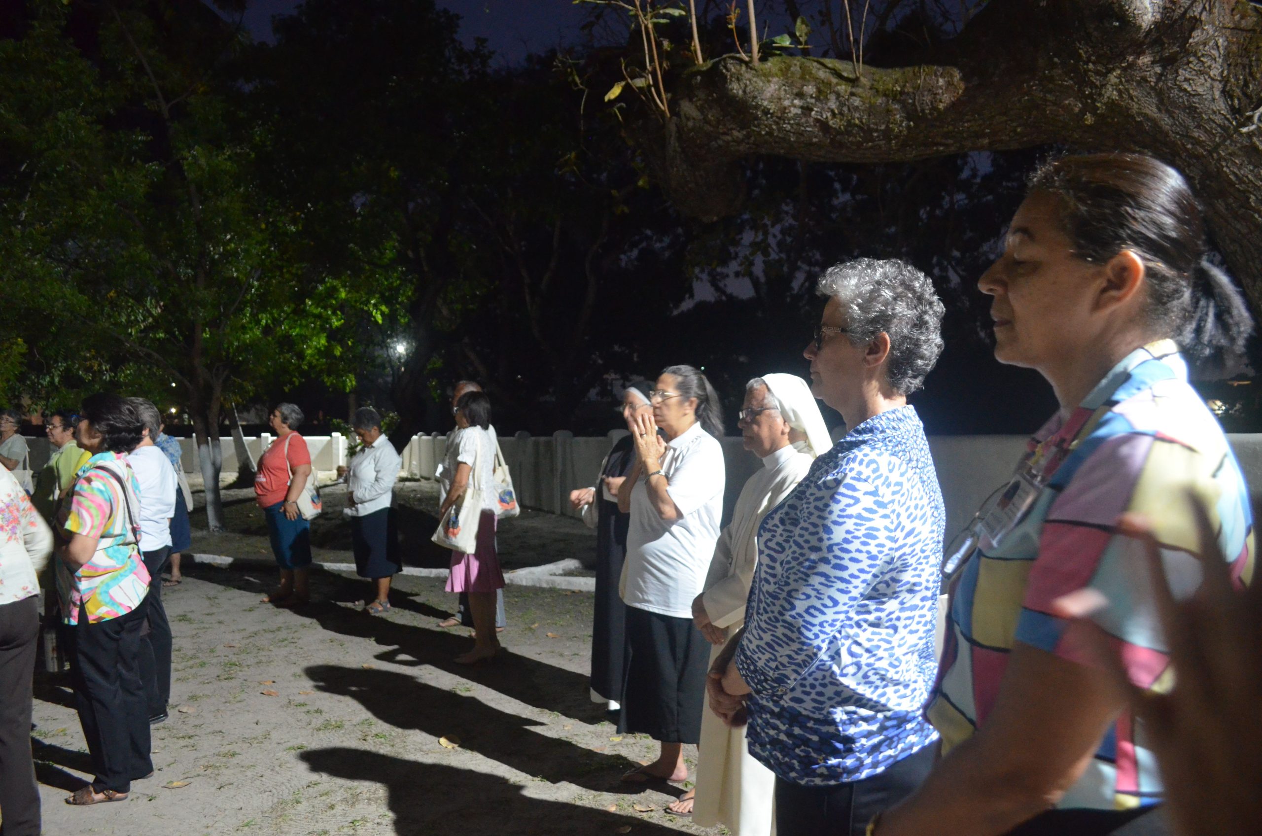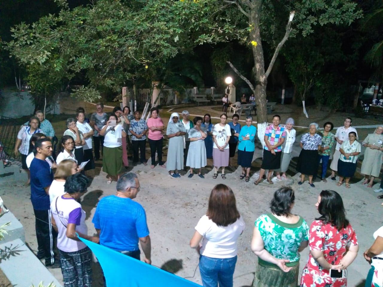 Ao final da tarde deste segundo dia, as/os participantes foram conduzidas/os pela mística da ecologia. O momento possibilitou um encontro com a mãe terra a partir da questão: “que lugar ocupo neste momento” e do convite a sair do lugar e ocupar outro lugar, em silêncio, como meio de conexão com Deus e o universo.
