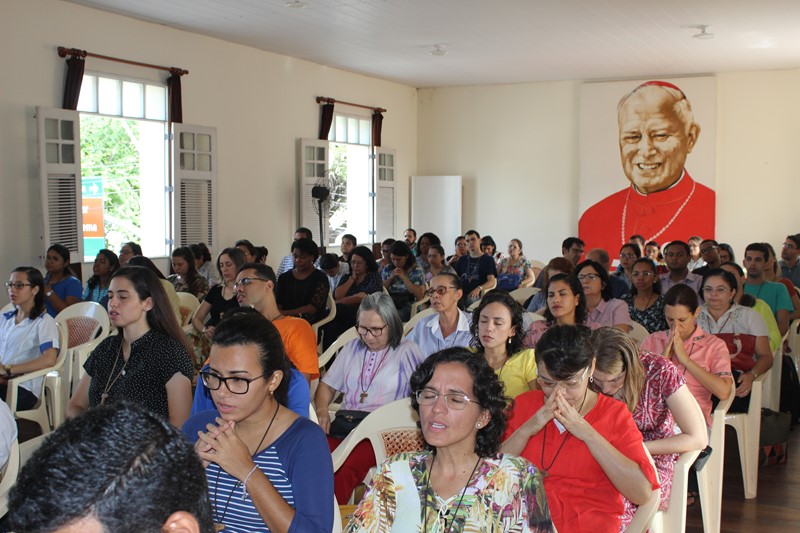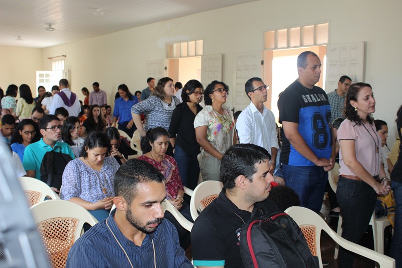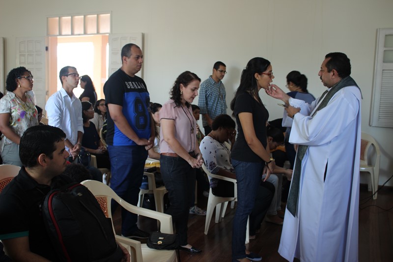 Integrantes da Comunidade Vida da Comunidade Católica Shalom estavam reunidos nesta manhã da quarta-feira, 15, no Centro de Pastoral “Maria, Mãe da Igreja”, participando de uma manhã de formação. Aproximadamente 200 jovens e adultos começaram o dia participando da celebração Eucarística presidida por Padre Antônio Furtado e concelebrada por padre Célio Lourenço e Padre Sílvio Scopel.