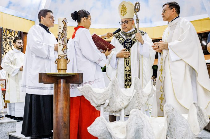Como sinal da missão confiada, o novo pároco recebeu os símbolos pastorais — a chave do sacrário, o óleo dos catecúmenos e a estola roxa — que expressam suas responsabilidades na condução da comunidade, no cuidado com a Palavra, na vida sacramental, na evangelização e no acompanhamento pastoral do povo confiado à paróquia. Ao final do rito, foi oficialmente declarado empossado como pároco da Paróquia Nossa Senhora da Assunção.