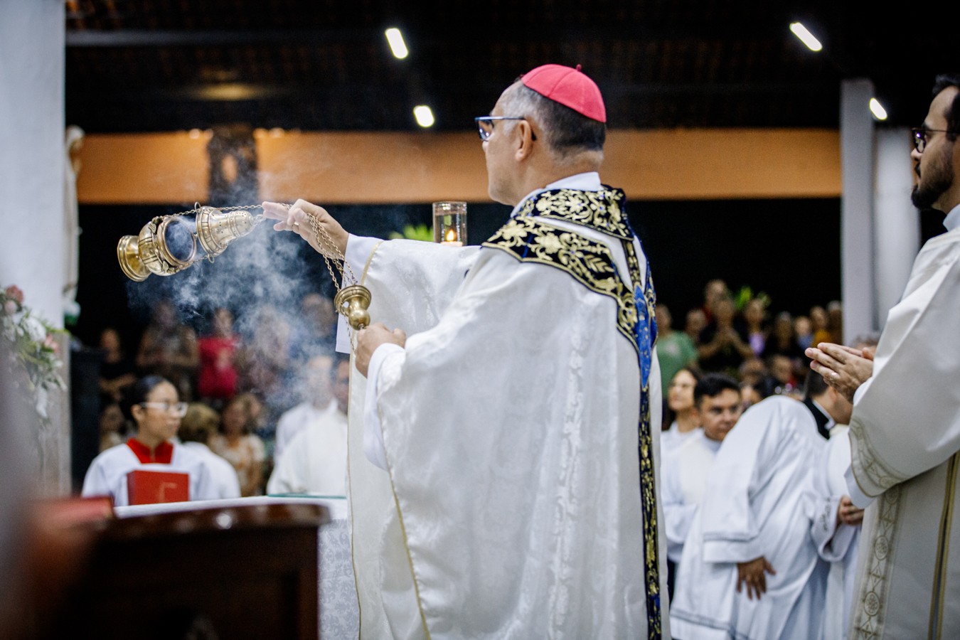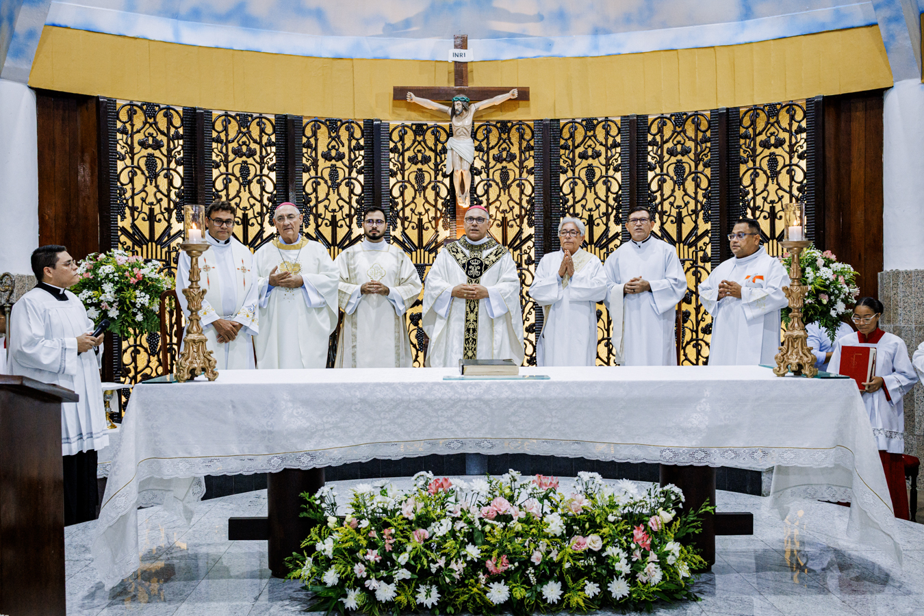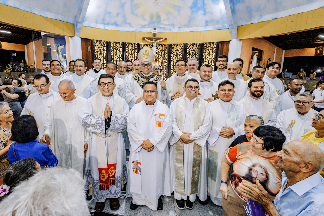 A celebração contou com a presença de padres do clero arquidiocesano, religiosos, fiéis da comunidade paroquial, familiares e amigos do sacerdote empossado. Concelebraram a Eucaristia Dom Frei Jesús María López Mauleón, OAR, bispo prelado do Alto Xingu–Tucumã (PA), e o vigário episcopal da Região Nossa Senhora da Assunção, Padre Francisco Aderlane Freitas Carneiro, além de outros presbíteros convidados.