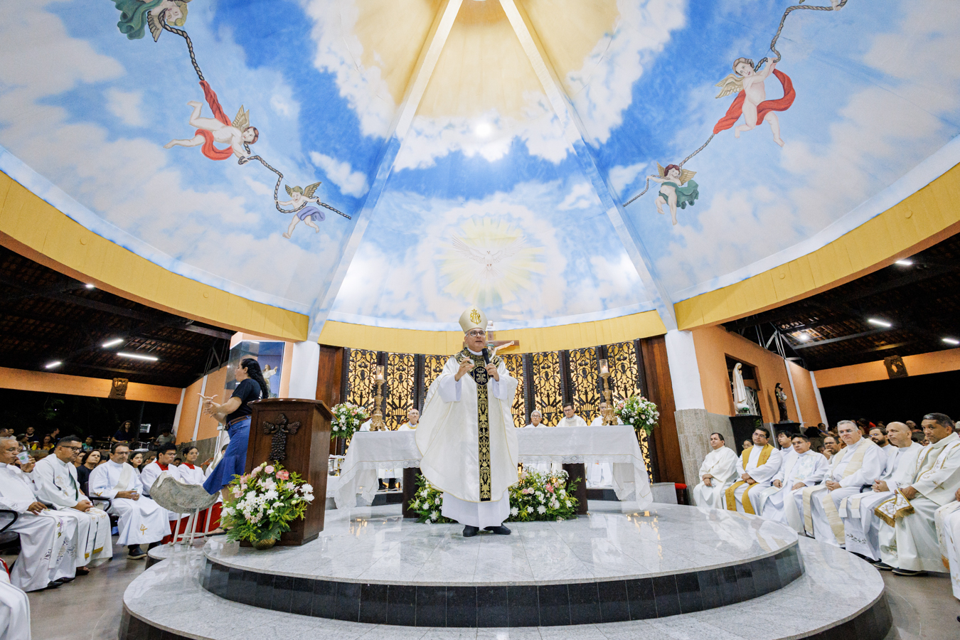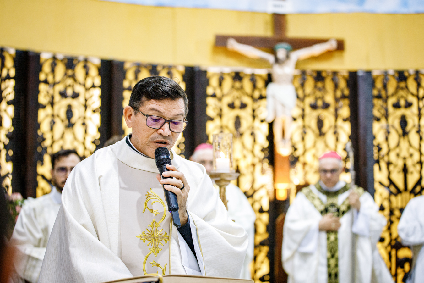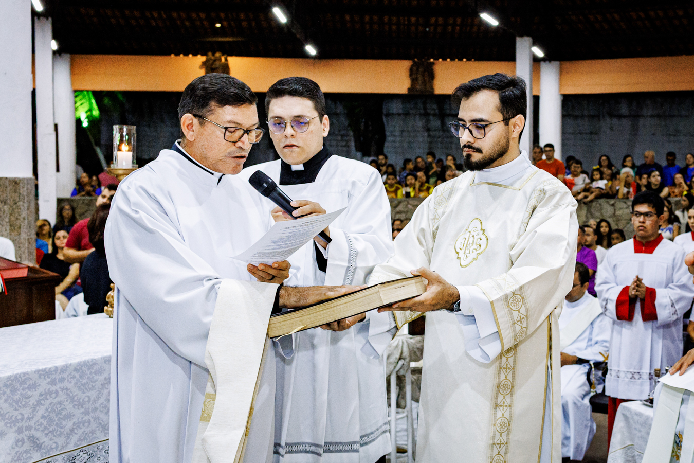 A celebração contou com a presença de padres do clero arquidiocesano, religiosos, fiéis da comunidade paroquial, familiares e amigos do sacerdote empossado. Concelebraram a Eucaristia Dom Frei Jesús María López Mauleón, OAR, bispo prelado do Alto Xingu–Tucumã (PA), e o vigário episcopal da Região Nossa Senhora da Assunção, Padre Francisco Aderlane Freitas Carneiro, além de outros presbíteros convidados.