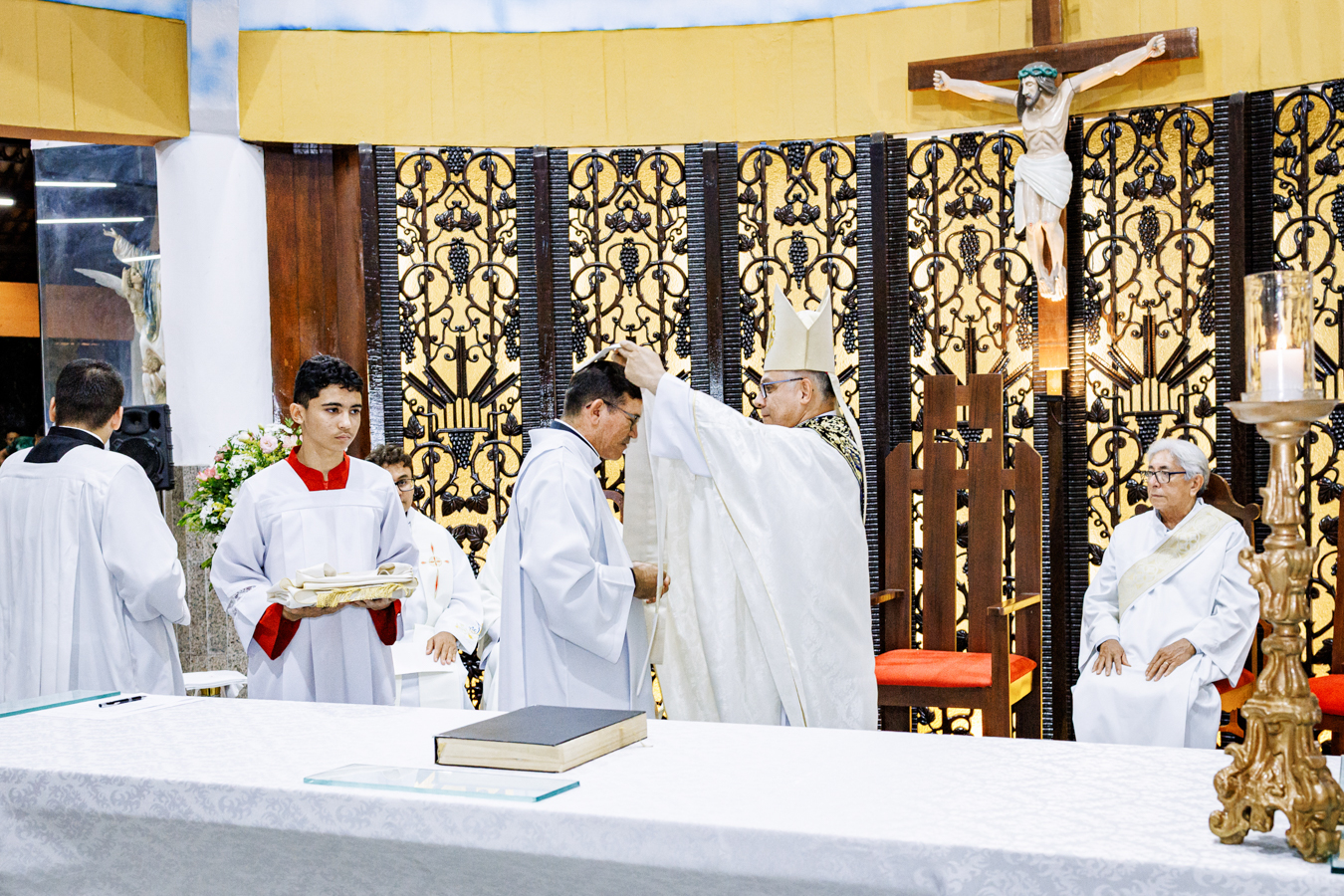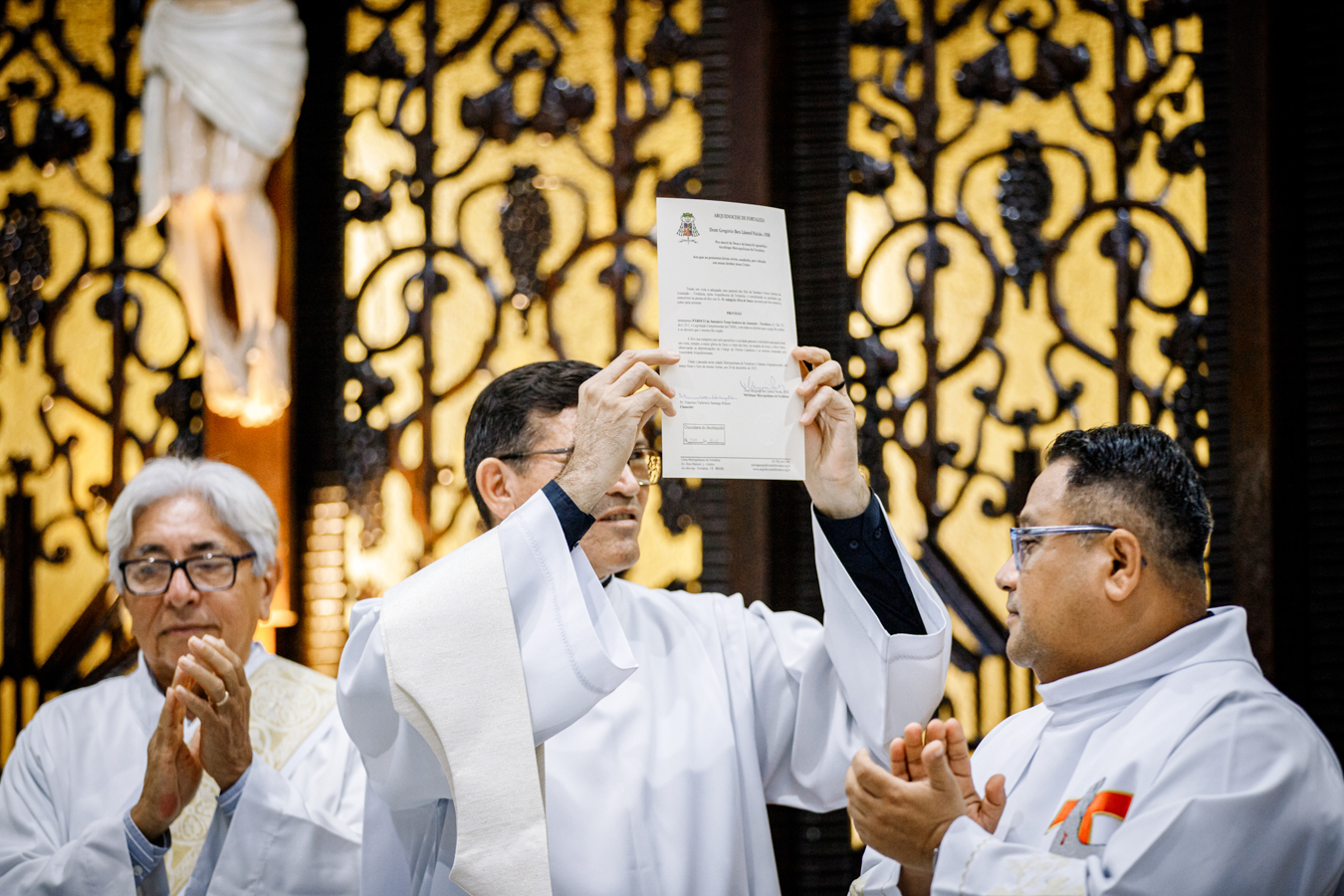 O rito de posse ocorreu conforme as normas da Igreja e foi integrado à celebração eucarística. Um dos momentos centrais foi a leitura do texto da Provisão, datada de 26 de dezembro de 2025, realizada pelo Padre Francisco Valternilo Santiago Ribeiro, chanceler da Arquidiocese de Fortaleza, oficializando a nomeação do novo pároco.