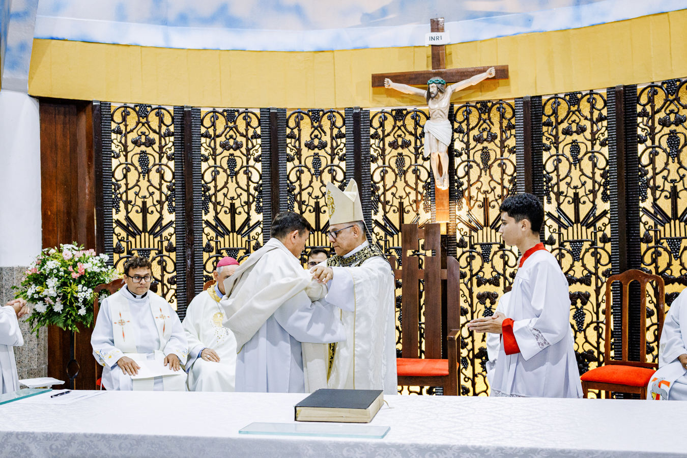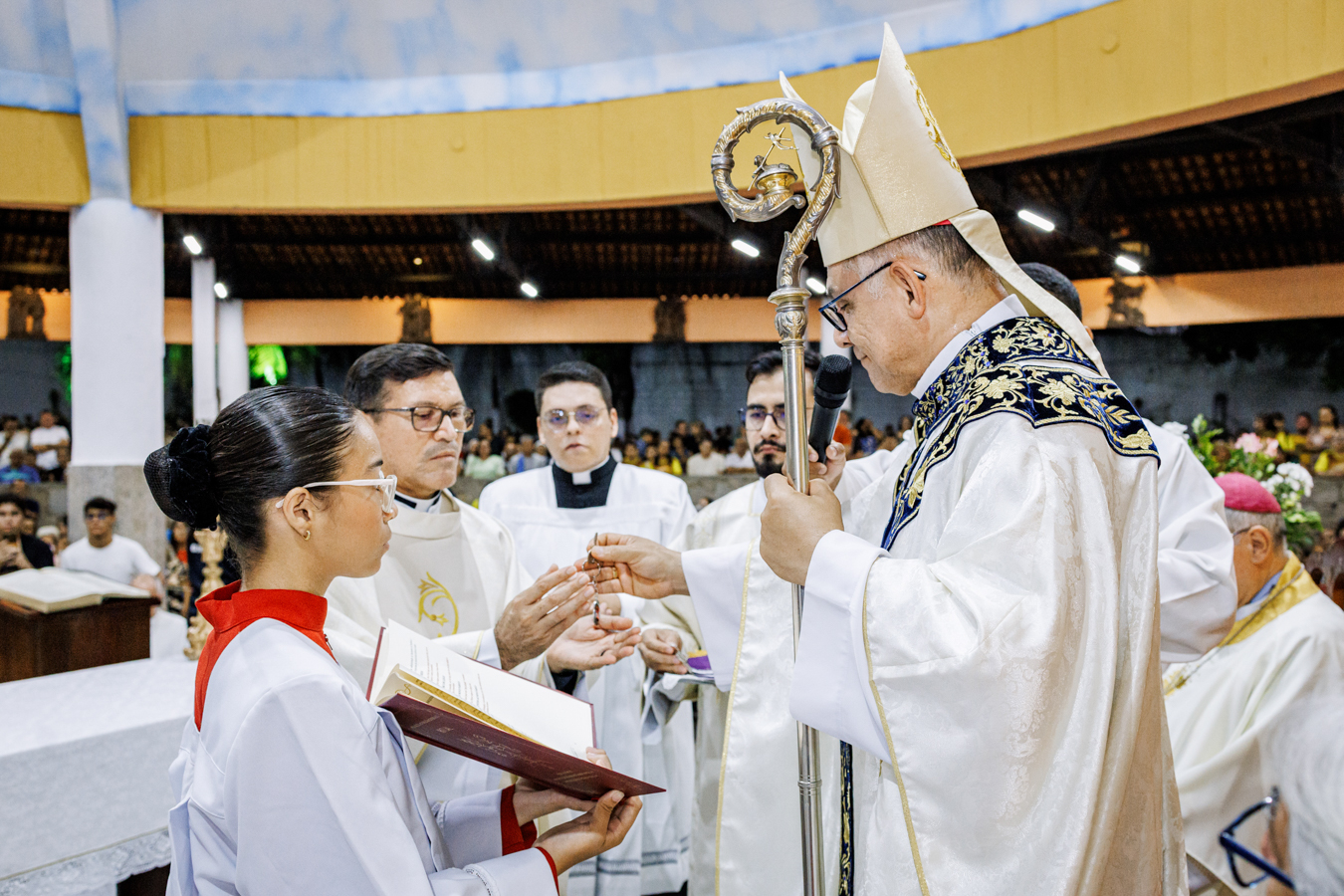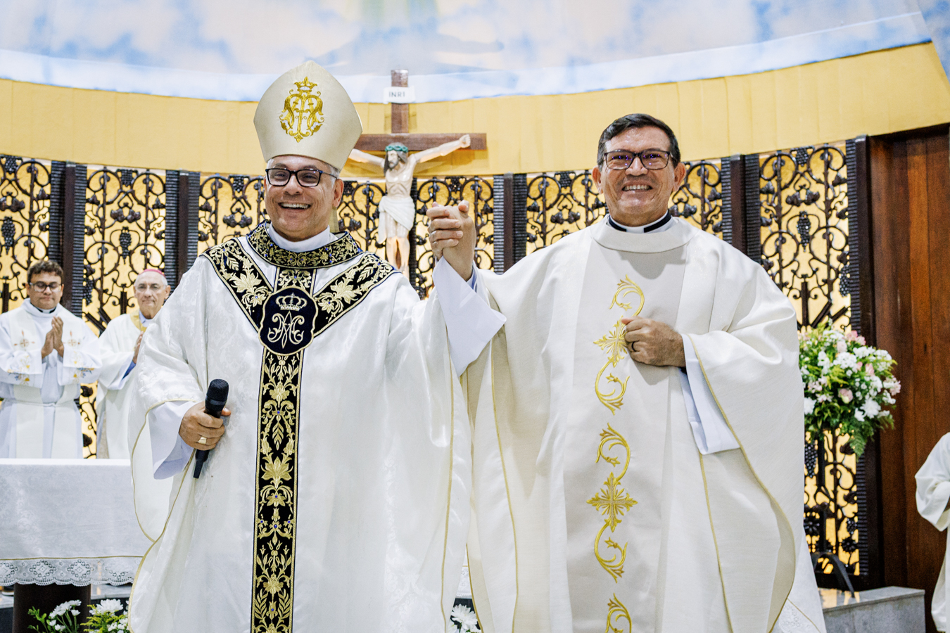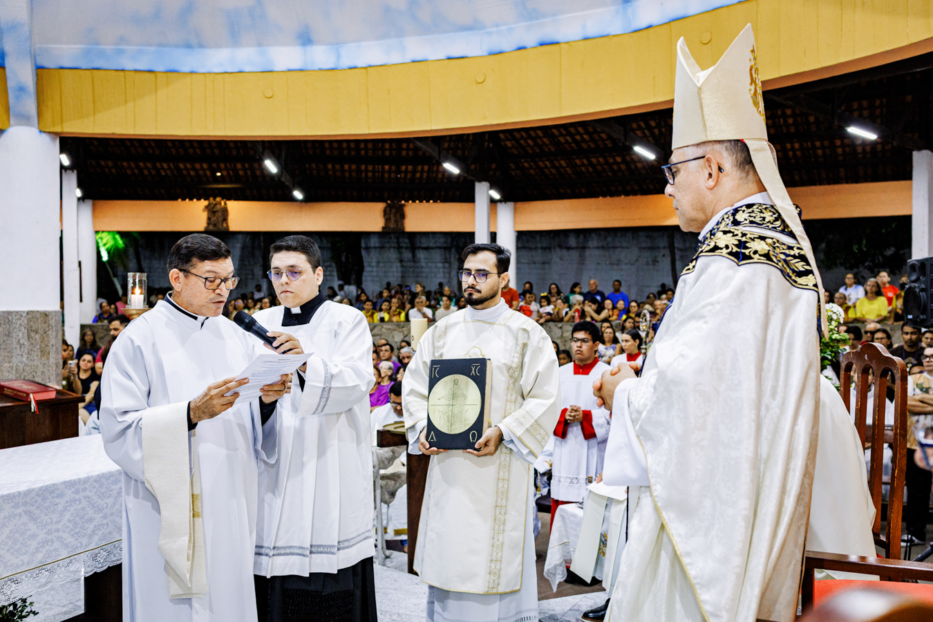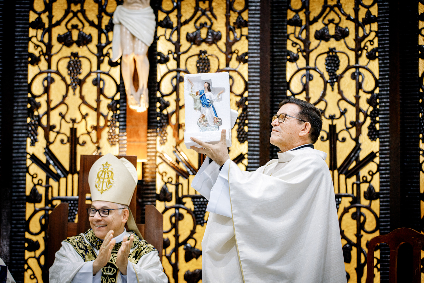 Como sinal da missão confiada, o novo pároco recebeu os símbolos pastorais — a chave do sacrário, o óleo dos catecúmenos e a estola roxa — que expressam suas responsabilidades na condução da comunidade, no cuidado com a Palavra, na vida sacramental, na evangelização e no acompanhamento pastoral do povo confiado à paróquia. Ao final do rito, foi oficialmente declarado empossado como pároco da Paróquia Nossa Senhora da Assunção.