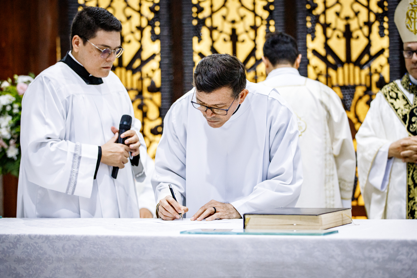 Em seguida, o Padre Adalgízio Silva de Souza realizou a Profissão de Fé e o Juramento de Fidelidade, assumindo publicamente o compromisso de exercer o ministério pastoral em comunhão com a Igreja e em obediência ao bispo diocesano.