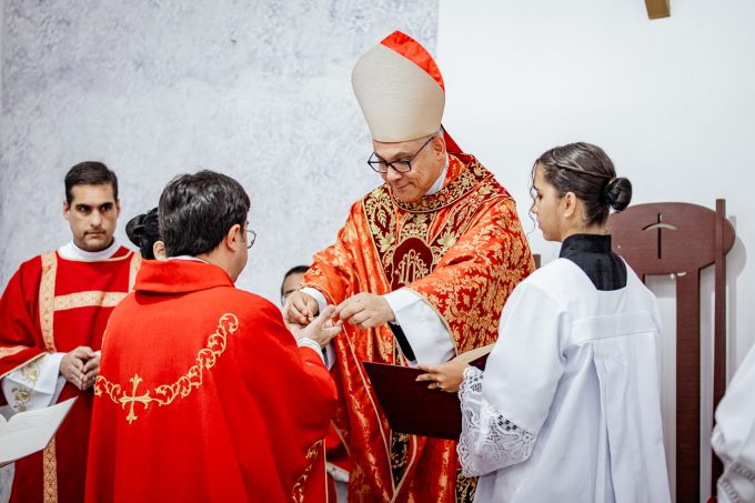 No momento dos símbolos litúrgicos que representam o seu novo ofício, recebeu as chaves da igreja e do sacrário, o óleo dos catecúmenos e a estola roxa, cada um com seu significado sacramental e pastoral: as chaves simbolizando a responsabilidade de abrir e fechar as portas da casa de Deus em nome da Igreja, o óleo representando o cuidado com a vida cristã e a estola evidenciando o ofício sacerdotal exercido com confiança e serviço.