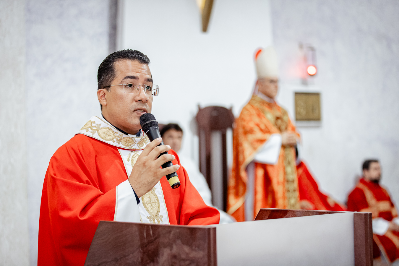 Ao fazer uso da palavra, padre Thiago expressou a alegria e o compromisso com a missão que lhe foi confiada: