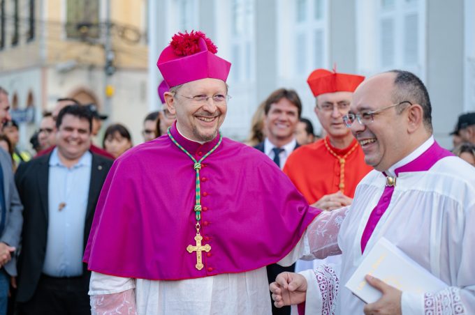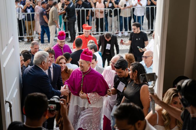 Acompanhado do Cardeal Dom Sergio da Rocha e de Dom Gregório Paixão, OSB, o novo Bispo da Diocese de Baturité seguiu no trajeto a pé. À porta da Catedral, foi recebido, de forma solene, pelo Pároco, Pe. José Benício Nogueira.