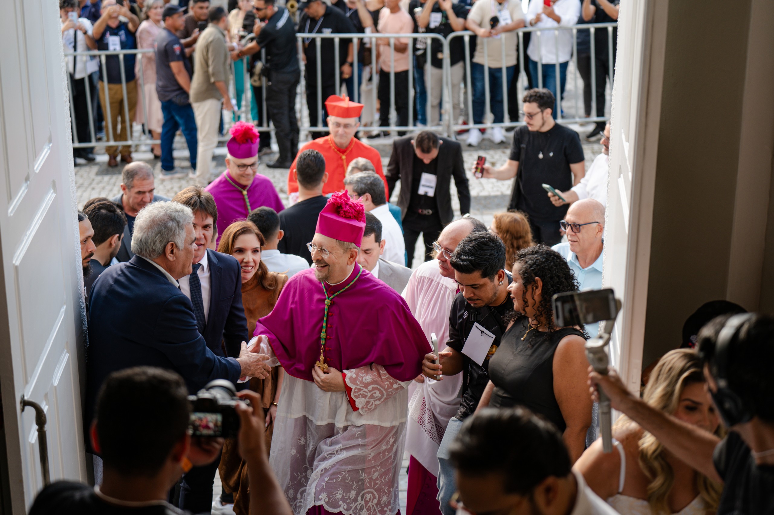 Acompanhado do Cardeal Dom Sergio da Rocha e de Dom Gregório Paixão, OSB, o novo Bispo da Diocese de Baturité seguiu no trajeto a pé. À porta da Catedral, foi recebido, de forma solene, pelo Pároco, Pe. José Benício Nogueira.