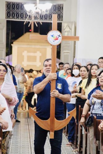 O momento também foi marcado pela entrada de imagens de santos padroeiros de algumas paróquias, reforçando a diversidade e a comunhão das comunidades da Região, sendo finalizado com a entrada da Cruz do Ano Jubilar, sinal central da fé e da esperança que sustentaram este tempo jubilar.