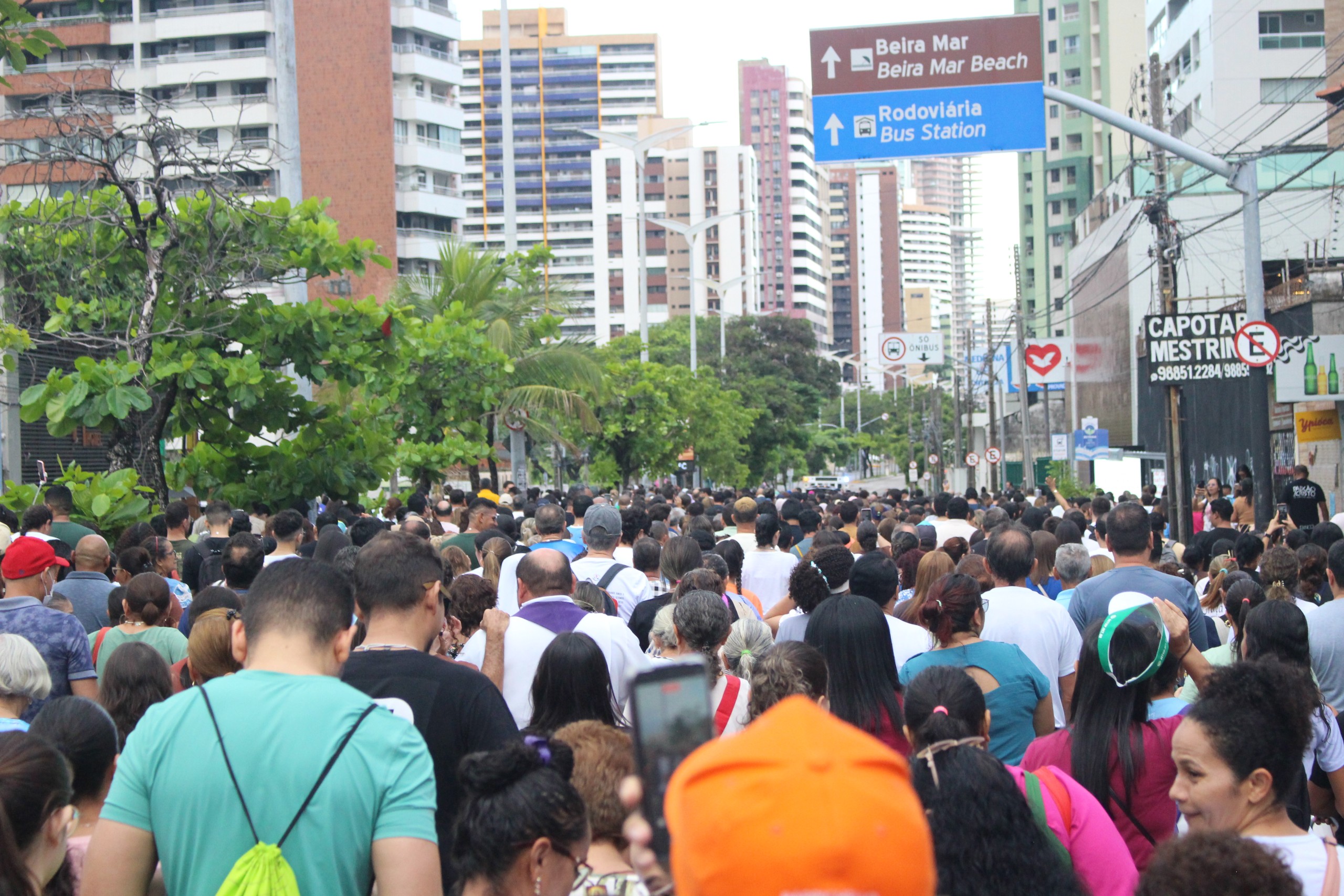 Antes de iniciar o trajeto, Dom Gregório Paixão, OSB, arcebispo metropolitano da arquidiocese de Fortaleza, acompanhado por diversos sacerdotes, abençoou os fiéis com água benta. Durante o percurso, a multidão cantou e rezou o Terço da Misericórdia; muitos aproveitaram a presença dos padres para o sacramento da confissão. O evento contou também com o gesto concreto da doação de alimentos, arrecadados tanto na paróquia do Mucuripe quanto durante a própria caminhada.