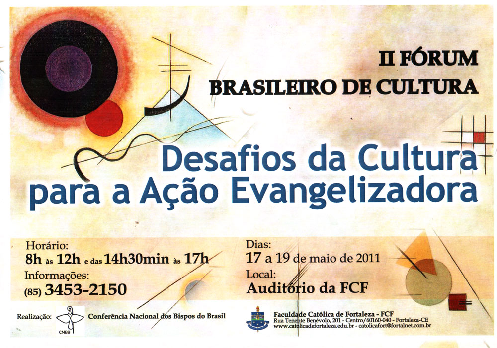 OBJETIVO: Refletir sobre os desafios que a cultura compreendida em seu desenvolvimento dinâmico traz para a ação evangelizadora visando despertar na Igreja do Brasil, uma atitude dialógica e propositiva.