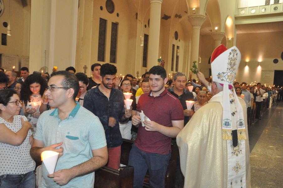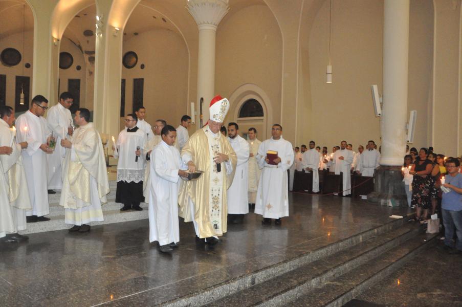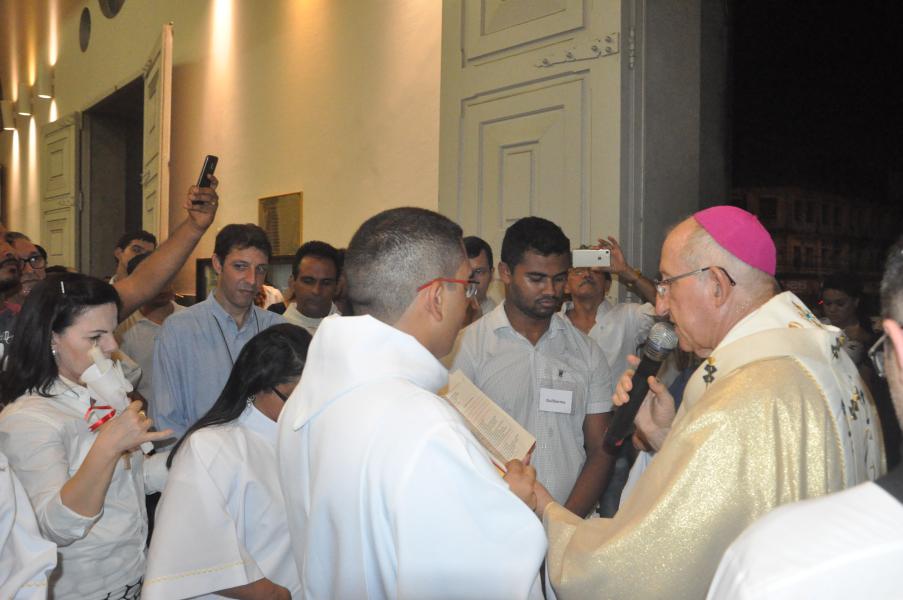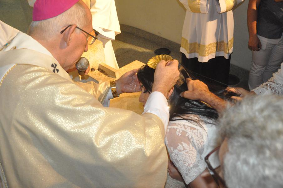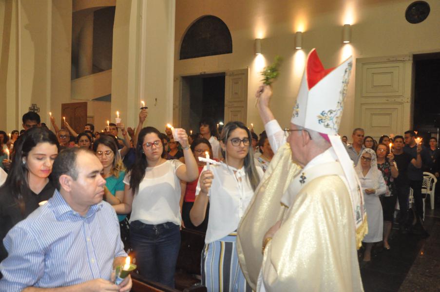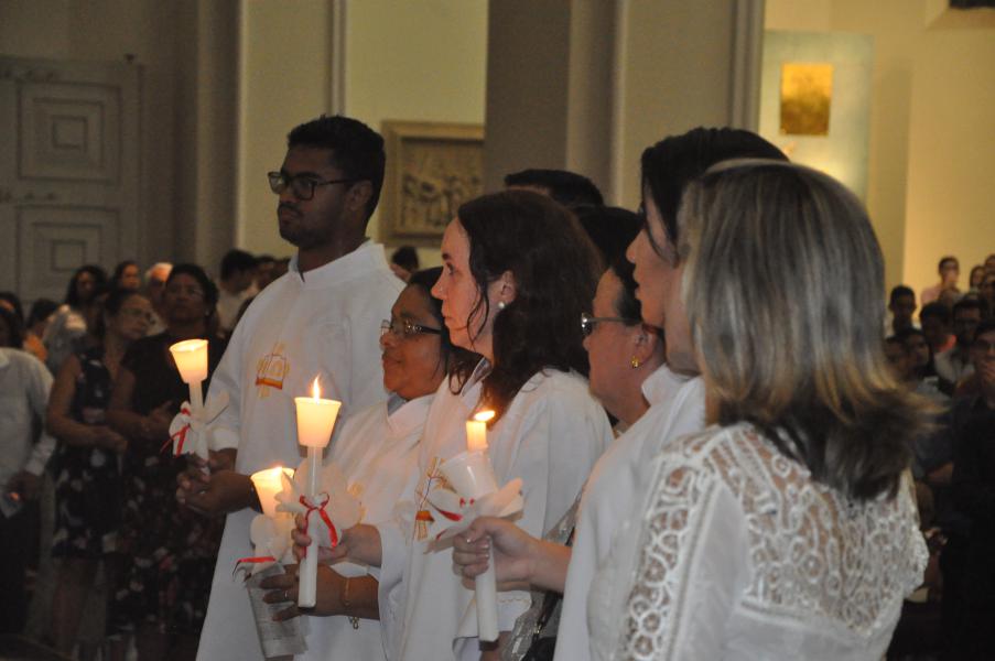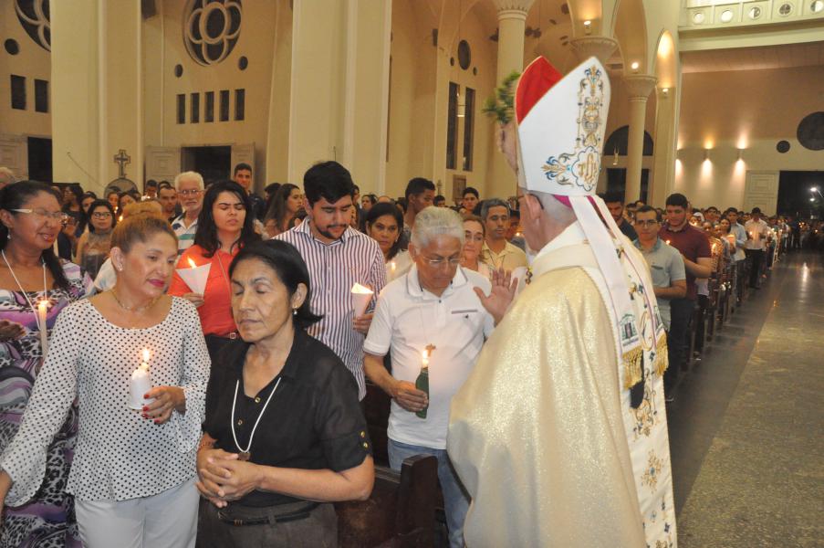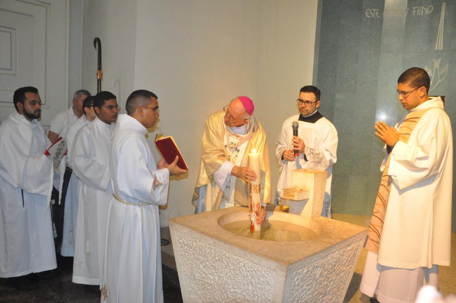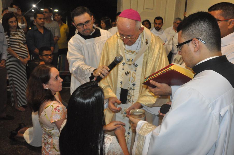 Após acompanhar a Liturgia da Palavra, intercalada por Salmos, quatro Catecúmenos são batizados nesta noite na Catedral. São eles: Guilherme Souza Ventura, Arlete Gonçalves Silvestre, Hanna Brunielle Cavalcante de Oliveira e Maria Celina Nascimento de Araújo.