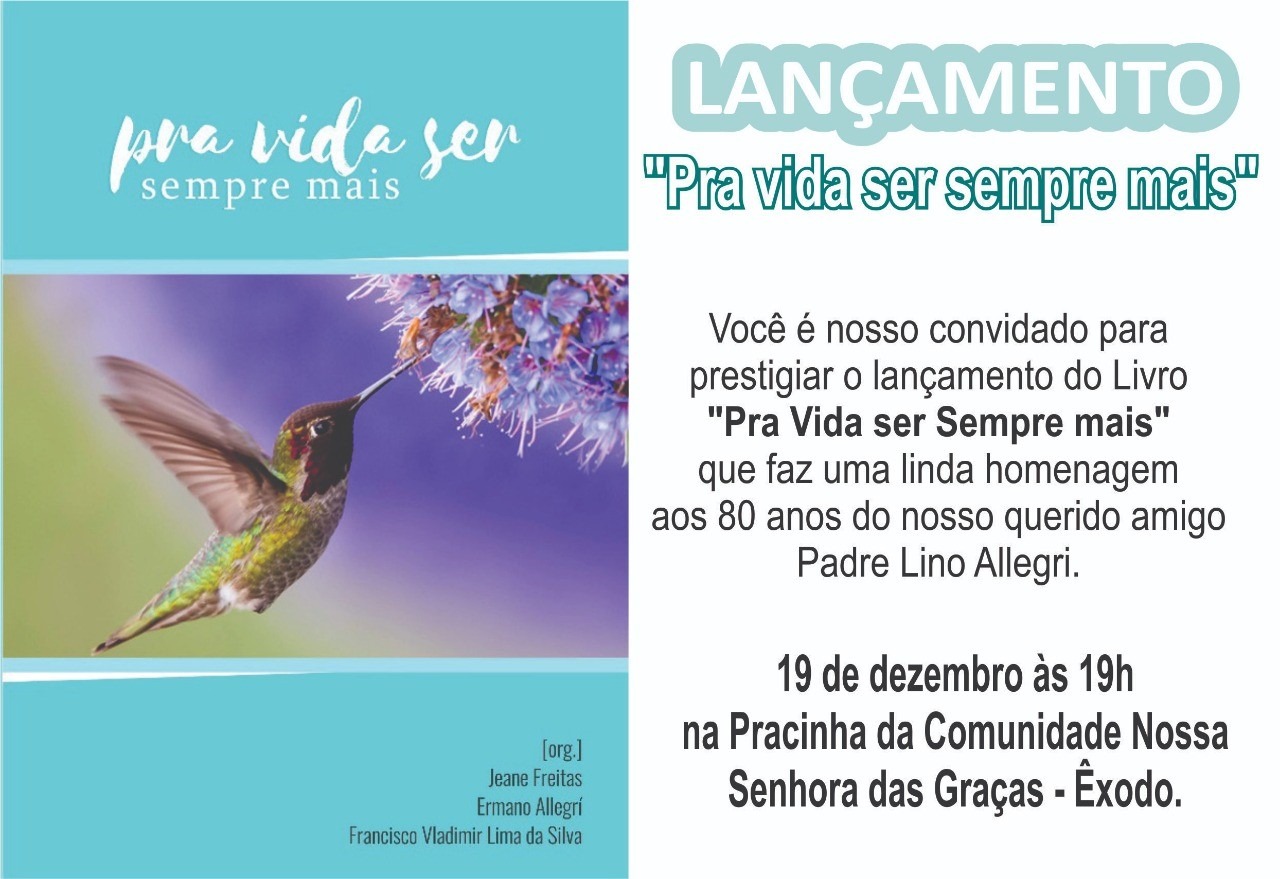 O livro é uma homenagem pelos 80 anos de padre Lino Allegri. O lançamento acontece hoje, 19 de dezembro de 2018, às 19h00, na Comunidade Nossa Senhora das Graças – Êxodo, Paróquia São Pedro, Barra do Ceará. “Pra vida ser sempre mais” foi escrito por várias mãos, é uma coletânea de depoimentos de pessoas das comunidades por onde Lino passou: Bahia, Ceará, Goiás e Itália. É um convite à esperança, é um despertar que nos ajuda nesse tempo de advento a enxergar Deus presente na vida da humanidade, dos pobres em especial. São amigos que escrevem para o amigo, desde memórias da família italiana à família brasileira. Moradores de rua, trabalhadores, camponeses, crianças e adolescentes, juventudes, mulheres, irmãs, padres, leigos. São os amigos e amigas de oitenta anos de caminhada. Todos colaboraram de alguma forma pra que ficasse registrado, cravado. Um pedaço de retalho de cada história, de cada lugar, de cada gente, que não se apagará nunca mais. Hermano Allegri e Luís Sartorel, também escrevem no livro.