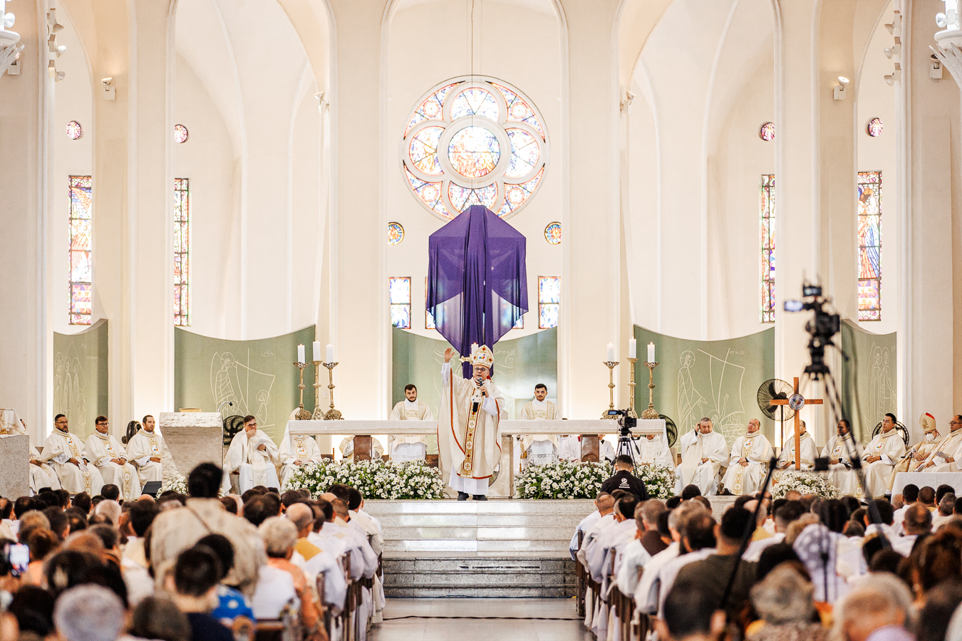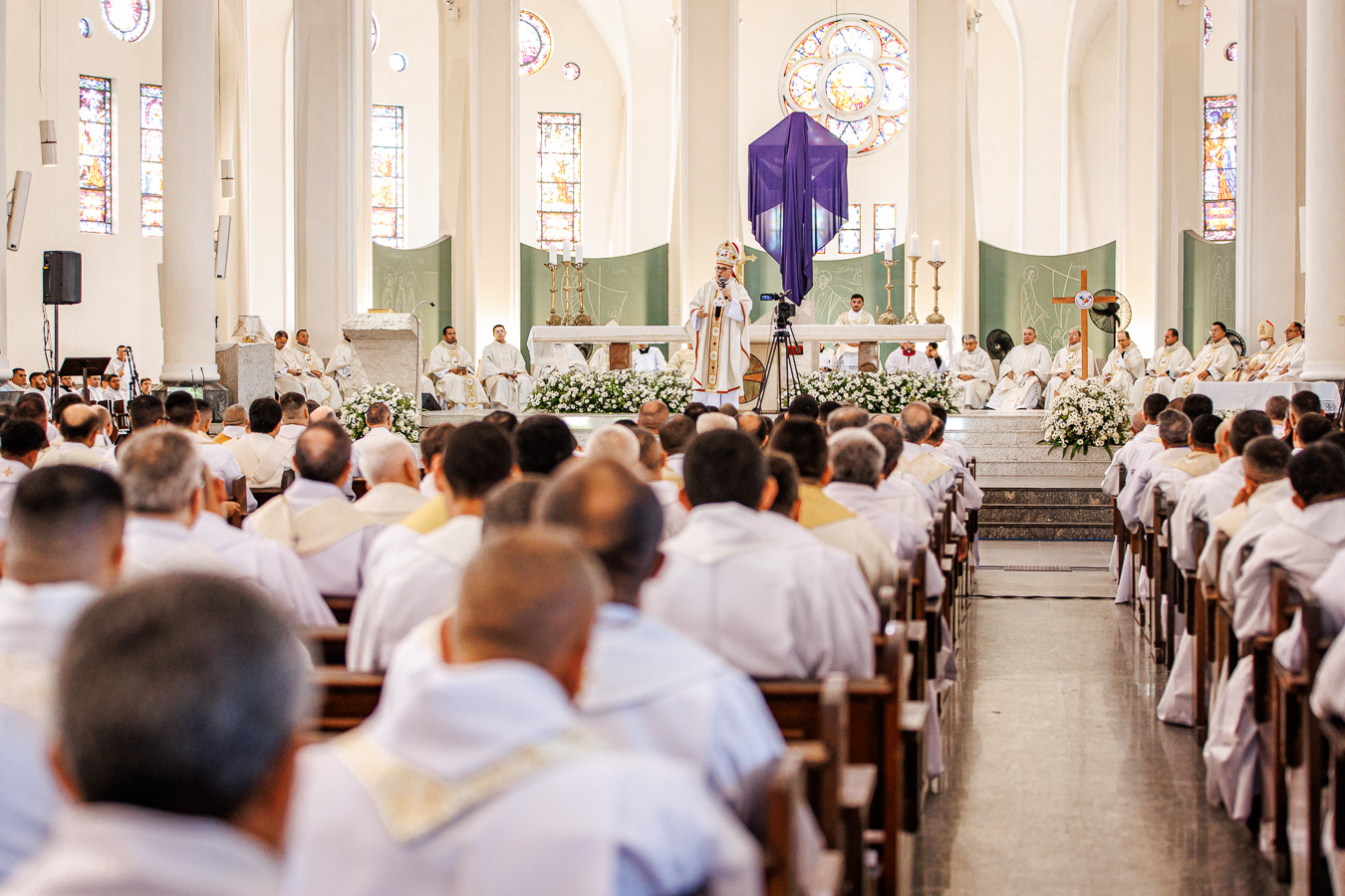 Na manhã da Quinta-feira Santa, 17 de abril de 2025, foi celebrada na Catedral Metropolitana de Fortaleza a Missa dos Santos Óleos, presidida por Dom Gregório Paixão, OSB, arcebispo metropolitano de Fortaleza. A celebração reuniu todo o clero arquidiocesano, além de seminaristas, religiosos(as) e fiéis das diversas paróquias e áreas pastorais, marcando de forma solene o início do Tríduo Pascal.