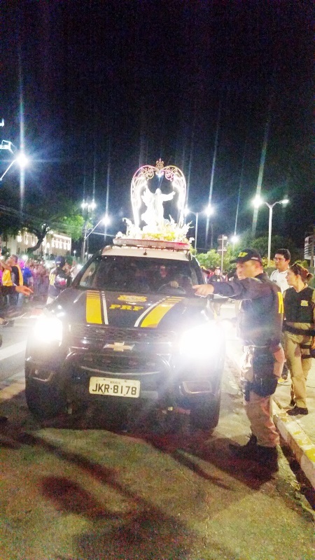 Já passavam das 18 horas e 30 minutos quando o andor com a imagem de Nossa Senhora da Assunção chegou à Catedral Metropolitana de Fortaleza escoltada pela Polícia Rodoviária Federal e uma multidão que a acompanhava. Após concluir a oração do terço, entre cantos e emoções a berlinda foi conduzida ao lugar de honra preparado no pátio da Igreja Mãe da Arquidiocese de Fortaleza no meio de crianças vestidas de anjos.