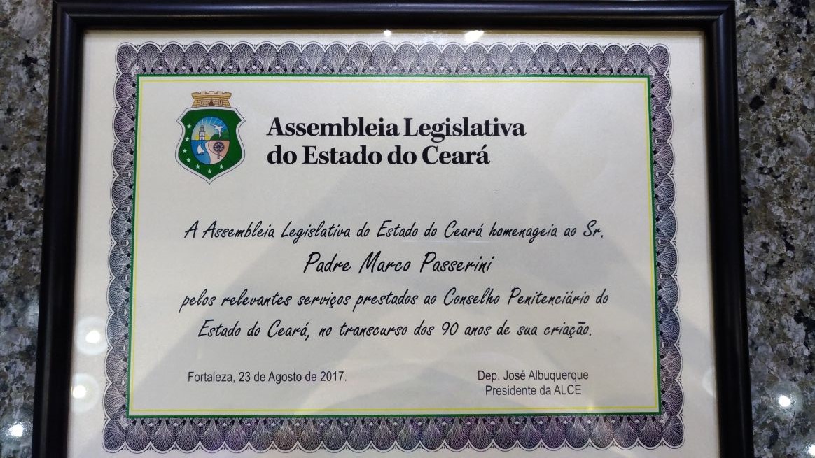 Desde 1998, padre Marco Passerini dedica-se na missão junto aos presidiários e suas famílias. Foi coordenador da Pastoral Carcerária da Arquidiocese de Fortaleza por mais de uma década e atualmente é Coordenador da Pastoral Carcerária do Regional Nordeste Um -Ceará. Recebeu em 2012, a Medalha Clodoaldo Pinto, do Conselho Penitenciário do Estado do Ceará, pelos serviços e dedicação em prol da população carcerária no Ceará, no Brasil e no mundo.