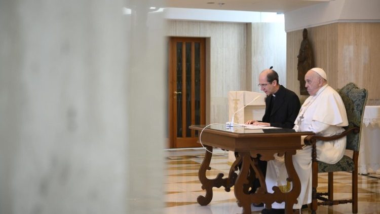 Papa Francisco durante o Angelus recitado na capela da Casa Santa Marta (VATICAN MEDIA Divisione Foto)