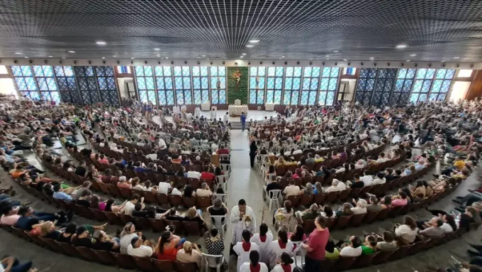 Padre Fábio de Melo participa do encerramento do Jubileu de Ouro da Paróquia Nossa Senhora da Glória em Fortaleza.