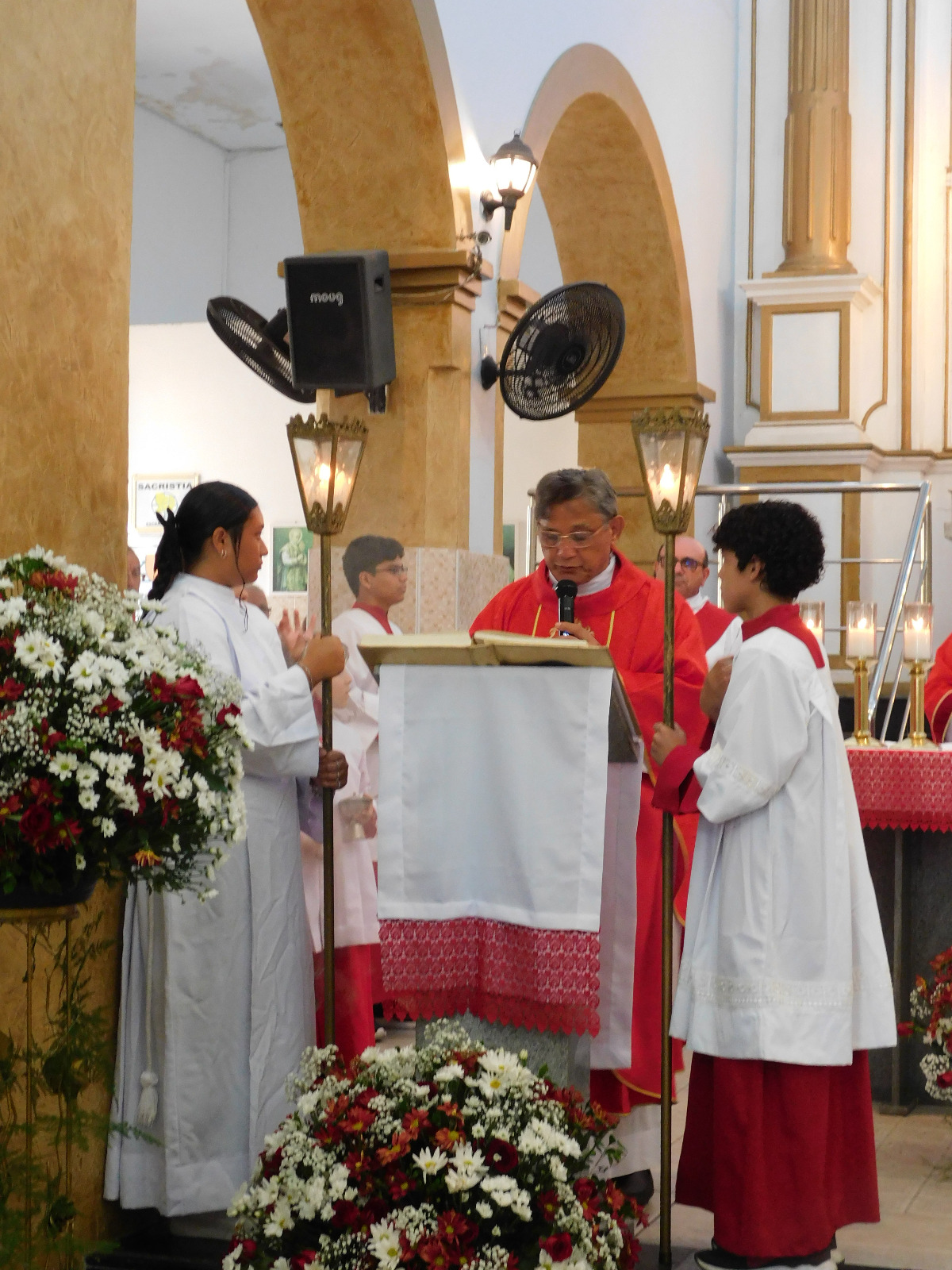 A solene celebração eucarística foi presidida por Dom Gregório Paixão, OSB, arcebispo de Fortaleza, e concelebrada pelo vigário episcopal da Região São José, Padre Bruno Moreira, juntamente com outros sacerdotes. O povo de Deus, reunido com fé e alegria, participou ativamente deste momento, elevando preces e ações de graças, e confiando a nova missão do sacerdote à materna intercessão de Nossa Senhora do Patrocínio e à constante proteção divina.