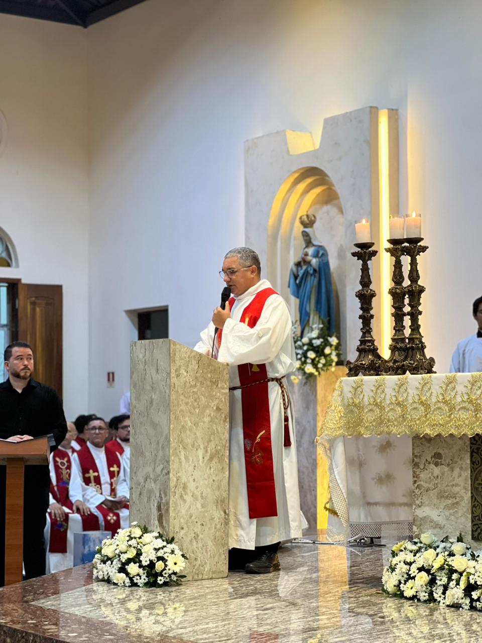 Após a oração depois da Comunhão, o Padre José Almir dirigiu-se à assembleia com palavras marcadas por humildade, sinceridade e espírito pastoral. Recordando o significado da data, afirmou: