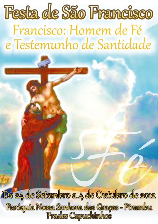 De 24 setembro a 4 de outubro as comunidade do Pirambu, – Paróquia Nossa Senhora das Graças, em Fortaleza, estará celebrando a Festa de São Francisco de Assis. Todos os dias às 18h30min será rezado o terço e a novena terminado com a Santa Missa. Neste ano toda a Província Capuchinha São Francisco da Chagas no Ceará e Piauí celebra o tema “São Francisco: Homem de Fé e testemunho”. No dia 24 será o hasteamento da bandeira, no dia 3 de outro, encerramento, acontece uma celebração Eucarística e trânsito de São Francisco (encenação). No dia 4 de outubro, dia de São Francisco, às 8 horas – Benção dos animais; às 18 horas – Procissão. Às 19 horas – Solene Celebração Eucarística em honra a São Francisco. Logo após as celebrações acontecerá o convívio fraterno, apresentações artísticas e culturais.