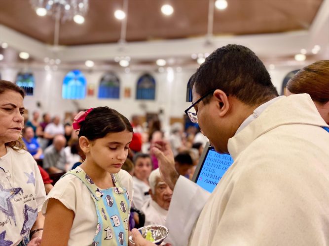 A celebração reuniu diversos fiéis enfermos e idosos assistidos pela Paróquia, além de outros que, movidos pela fé, também se uniram a esse momento de oração e esperança. Em um clima de profundo recolhimento, a comunidade elevou súplicas a Deus pela saúde do corpo e da alma, confiando à intercessão de Nossa Senhora de Lourdes aqueles que mais necessitam de cuidado e consolo.