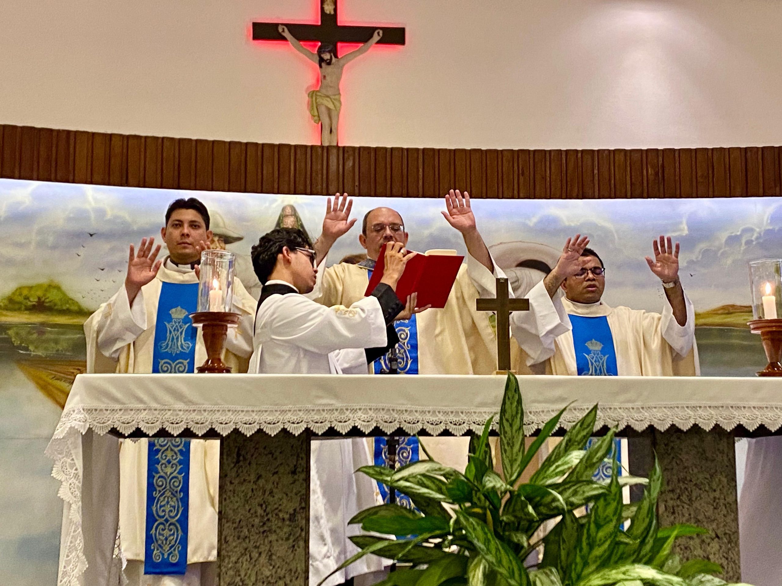 A Santa Missa foi presidida pelo pároco, Pe. Rafhael Maciel, e concelebrada pelos vigários paroquiais, Pe. Dyrles Marques e Pe. Augusto Brasileiro, que juntos conduziram a assembleia a um profundo momento de fé, confiança e entrega.