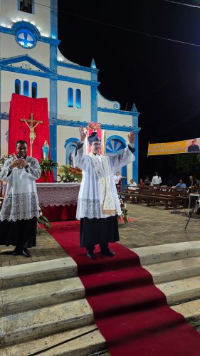 “Agora dirijo-me aos paroquianos de Aracoiaba, comunidades e sede! Que alegria encontrá-los e ser tão bem acolhido por cada um de vocês. Muito obrigado pela recepção, pelo carinho e pela alegria. Paz e graça para todos!”