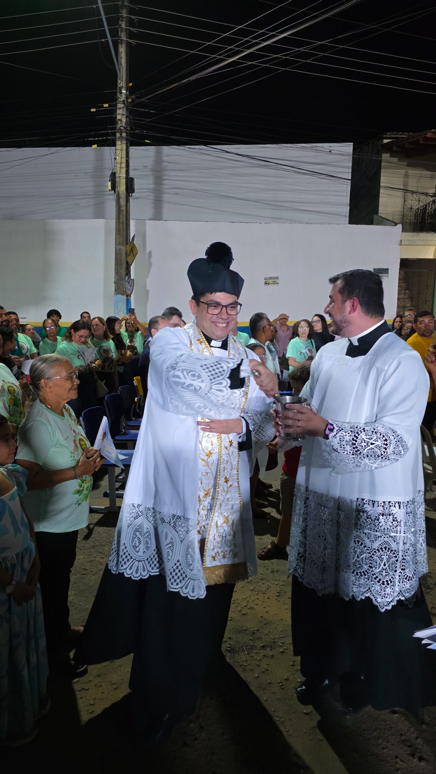 “Agora dirijo-me aos paroquianos de Aracoiaba, comunidades e sede! Que alegria encontrá-los e ser tão bem acolhido por cada um de vocês. Muito obrigado pela recepção, pelo carinho e pela alegria. Paz e graça para todos!”