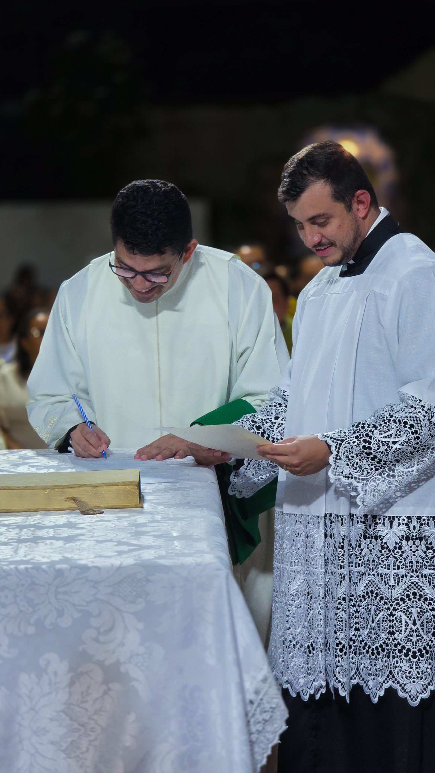 Durante o rito próprio da posse, Padre Denis realizou a Profissão de Fé e o Juramento de Fidelidade, comprometendo-se com o arcebispo e com a Igreja. Em seguida, recebeu das mãos de Dom Gregório importantes sinais de sua missão pastoral: o Evangeliário, a chave do sacrário da Igreja Matriz, o óleo dos catecúmenos e a estola roxa, símbolos do serviço pastoral confiado ao pároco.