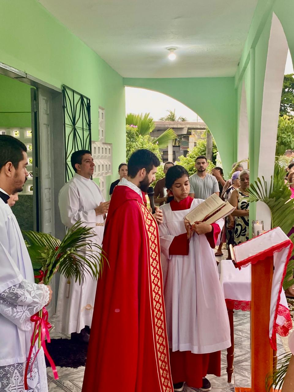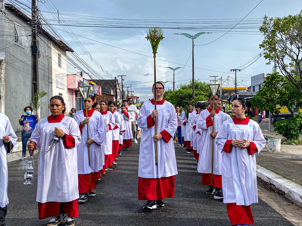 Ao longo do dia, duas Santas Missas reuniram centenas de fiéis que, com ramos nas mãos e o coração cheio de fé, fizeram memória da entrada triunfal de Nosso Senhor Jesus Cristo em Jerusalém, aclamando-O como Rei, mas também já se preparando para contemplar o mistério de Sua Paixão, Morte e Ressurreição.