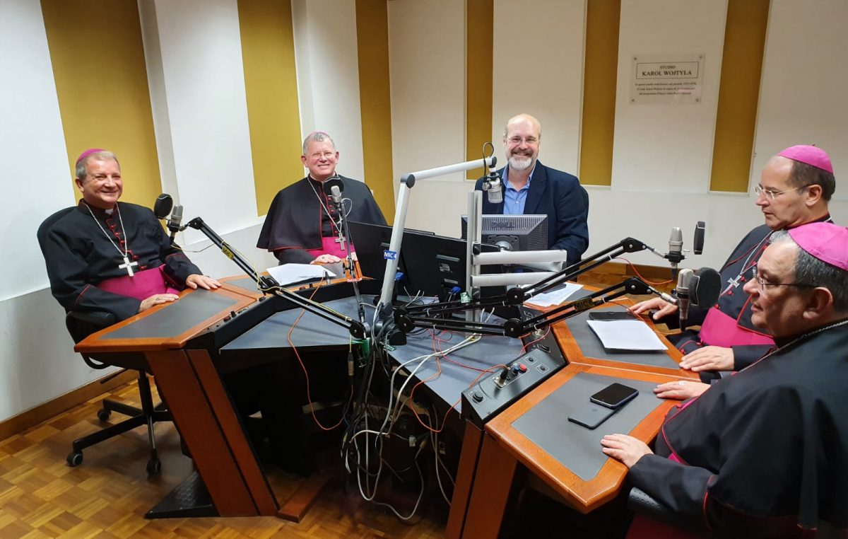 Após a audiência com o Papa Francisco hoje, 31 de outubro, às 10h30 (horário de Roma), no Palácio Apostólico, ponto alto da visita de três dias a Dicastérios e Congregações do Vaticano, a presidência da Conferência Nacional dos Bispos do Brasil (CNBB) concedeu uma entrevista ao jornalista Silvonei José Protz, da rádio Vaticano, no estúdio que leva o nome do São João Paulo II, local onde o então papa gravou 21 programas, tendo sido inaugurado mais tarde pelo papa emérito Bento XVI.