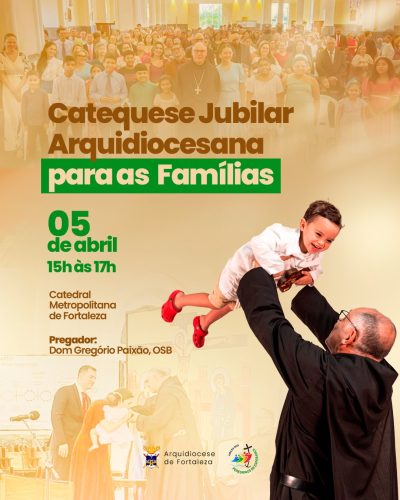A Arquidiocese de Fortaleza, por meio da Comissão Vida e Família, promoverá a Catequese Jubilar Arquidiocesana para as Famílias no dia 5 de abril, das 15h às 17h, na Catedral Metropolitana de Fortaleza com a temática “Alegrai-vos na esperança, sede pacientes na tribulação, perseverai na oração”.