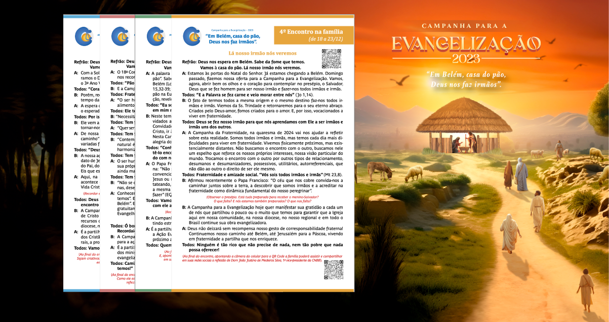 O Setor de Campanhas da Conferência Nacional dos Bispos do Brasil (CNBB) preparou quatro roteiros catequéticos com um itinerário espiritual para ser vivenciado no período do Advento em preparação ao nascimento de Jesus. Em cada roteiro, as pessoas também poderão, por meio do QR code que aparece impresso, acessar um vídeo de reflexão sobre o tema proposto com cada um dos quatro integrantes da presidência da CNBB.
