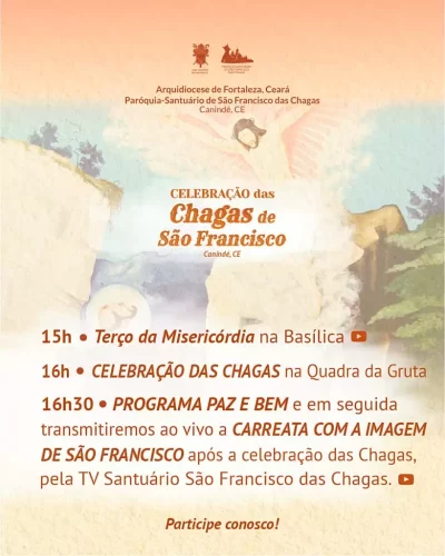 O Santuário dedicado a São Francisco em Canindé traz a característica muito forte da impressão das Chagas no Santo Franciscano. Com uma tradição centenária no Brasil, as imagens presentes no Santuário fazem questão de mostrar as marcas dos cravos da paixão e logo é possível ver uma identificação profunda do povo chagado que chega a Canindé pelas tantas mazelas do nosso tempo com o Santo que se identificou por inteiro com o crucificado.