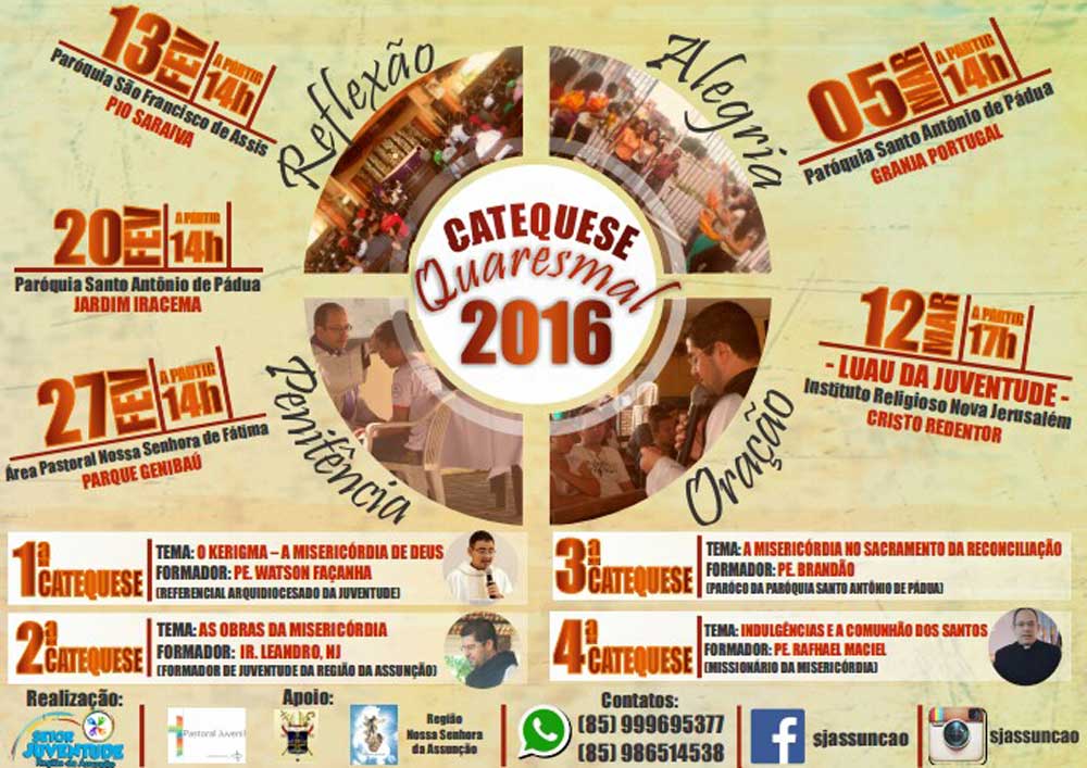 Venha vivenciar o Primeiro Encontro de Catequese Quaresmal. Será dia 13 de fevereiro 2016, amanhã, na Paróquia São Francisco de Assis, no Bairro Quintino Cunha, a partir das 14 horas.