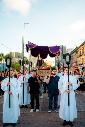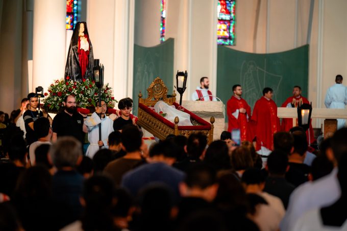 O arcebispo Dom Gregorio Paixão, OSB conduziu a celebração e a procissão do Senhor Morto que percorreu o entorno da Igreja Sé.
