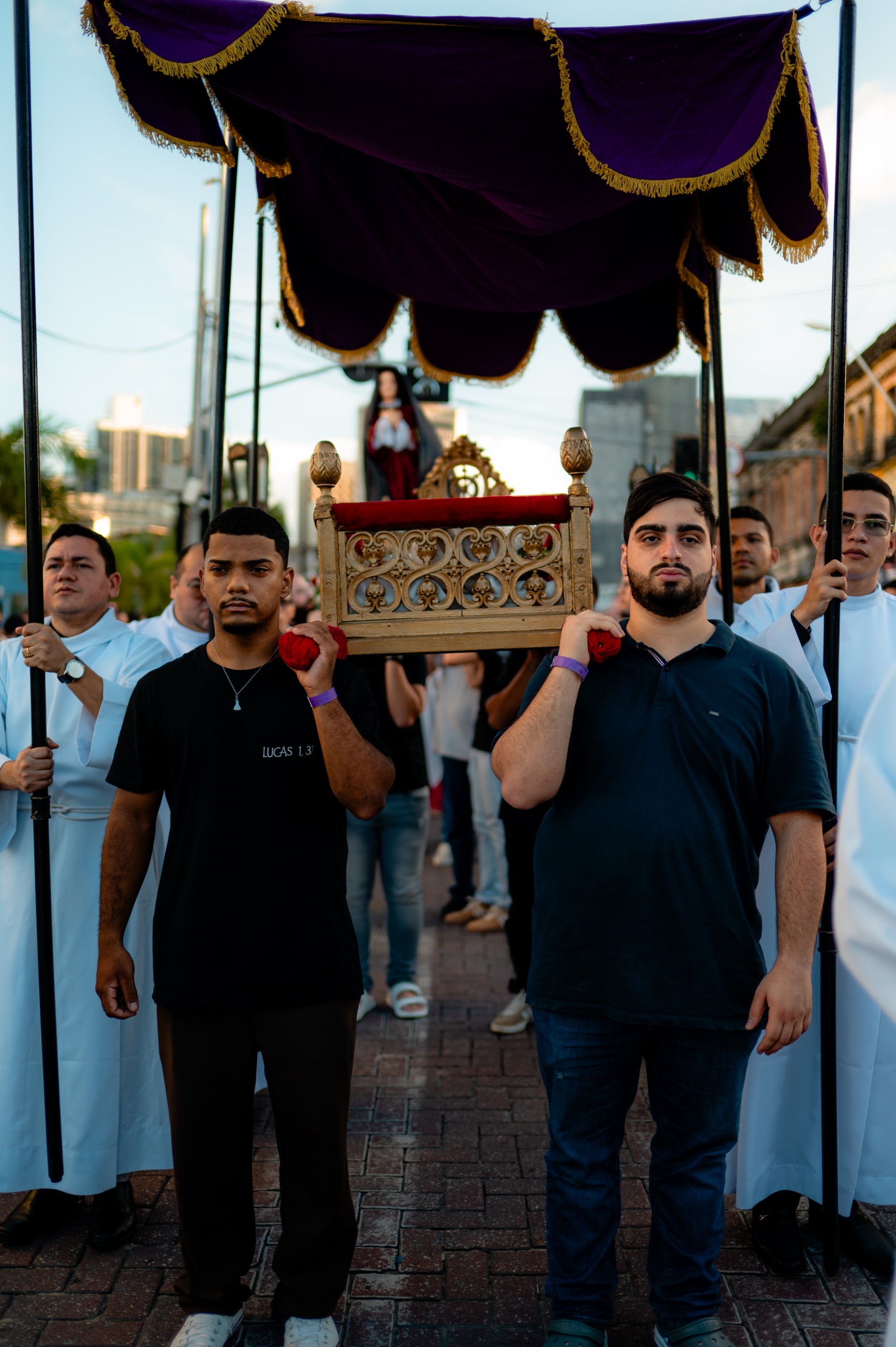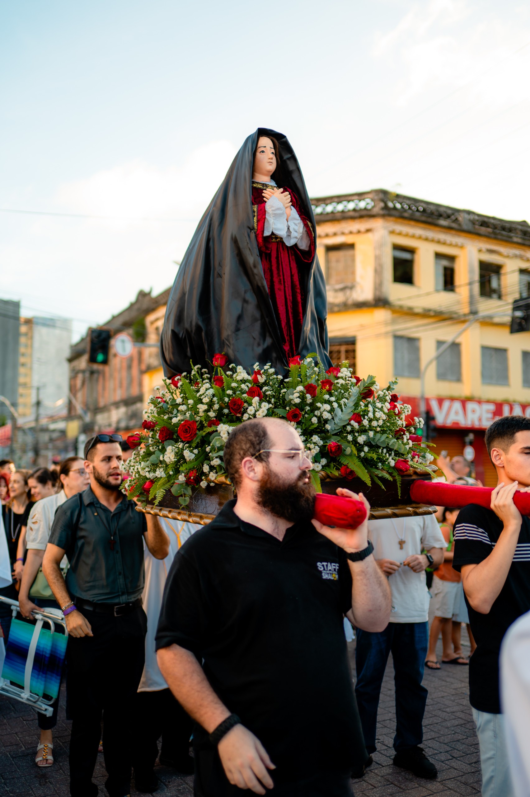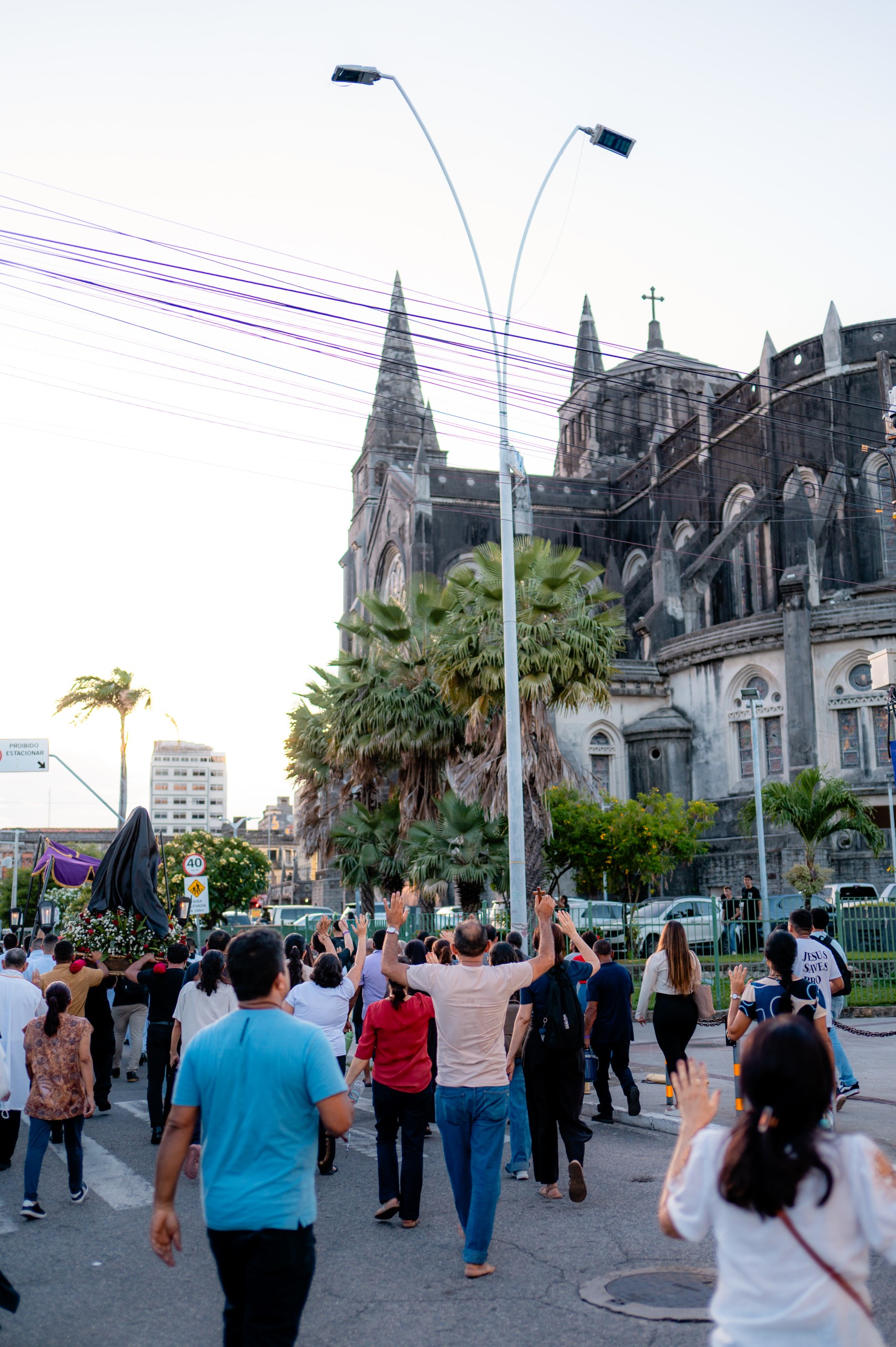 O arcebispo Dom Gregorio Paixão, OSB conduziu a celebração e a procissão do Senhor Morto que percorreu o entorno da Igreja Sé.