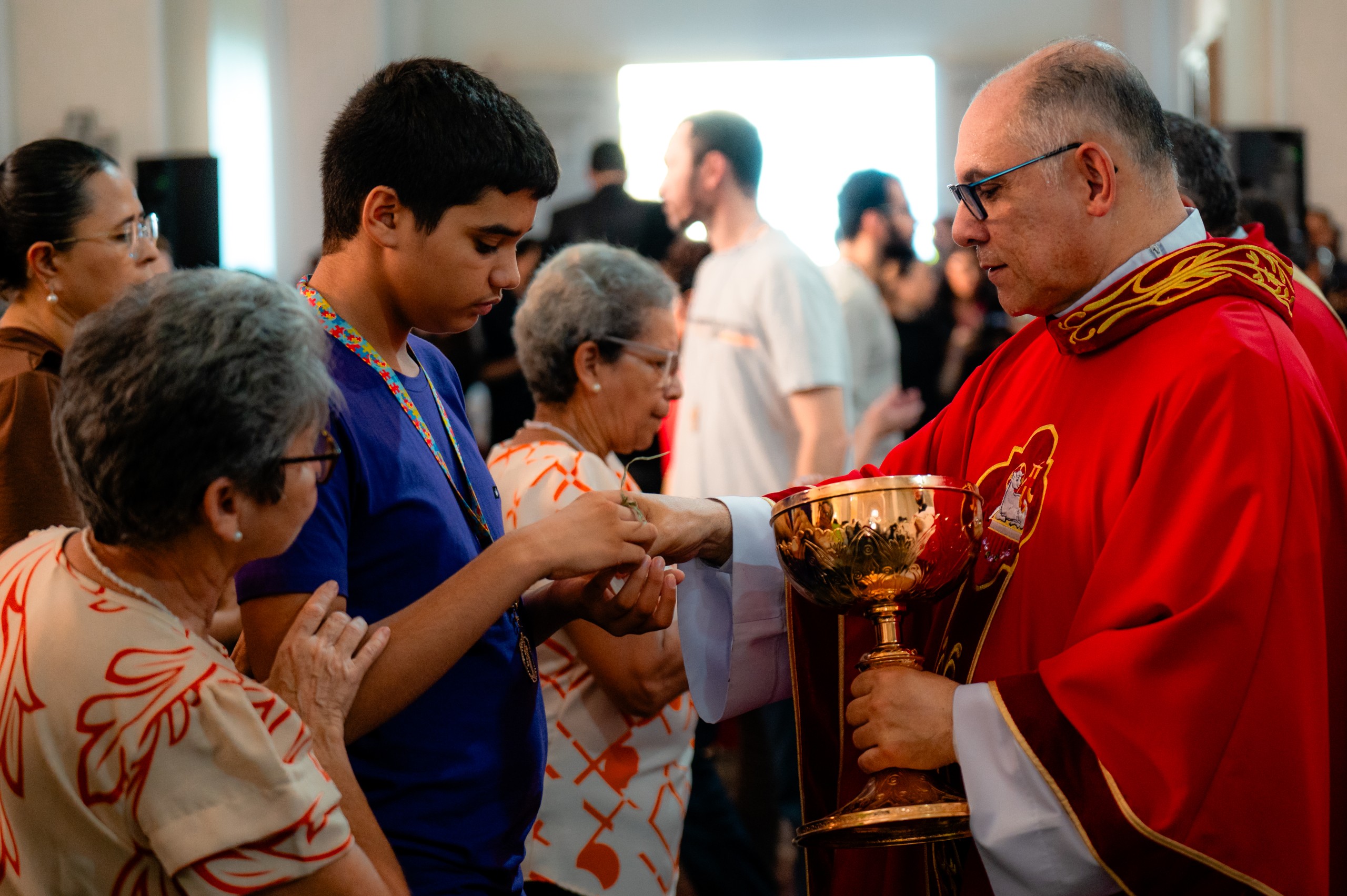 A Catedral Metropolitana de Fortaleza foi tomada de fiéis na Celebração do Senhor, muito são membros da Comunidade Católica Shalom que participam dos dias grandes da fé na Igreja Mãe.