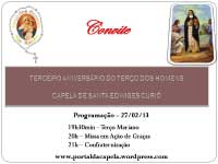 O Terço dos Homens desta Capela de Santa Edwiges, no bairro Curió celebra dia 27 de fevereiro, 3 Anos de trabalho pastoral junto ao corpo masculino da nossa Igreja. Anos acima de tudo, de quebra de paradigmas. Dentre nossas conquistas, citamos o aumento da participação dos homens na vida pastoral da igreja, principalmente nas equipes da liturgia e na organização da Festa da Padroeira, Santa Edwiges. Foi percebido também um aumento da autoestima do homem, chegamos a vivenciar vitórias de homens que estavam em depressão.